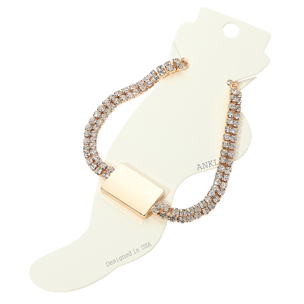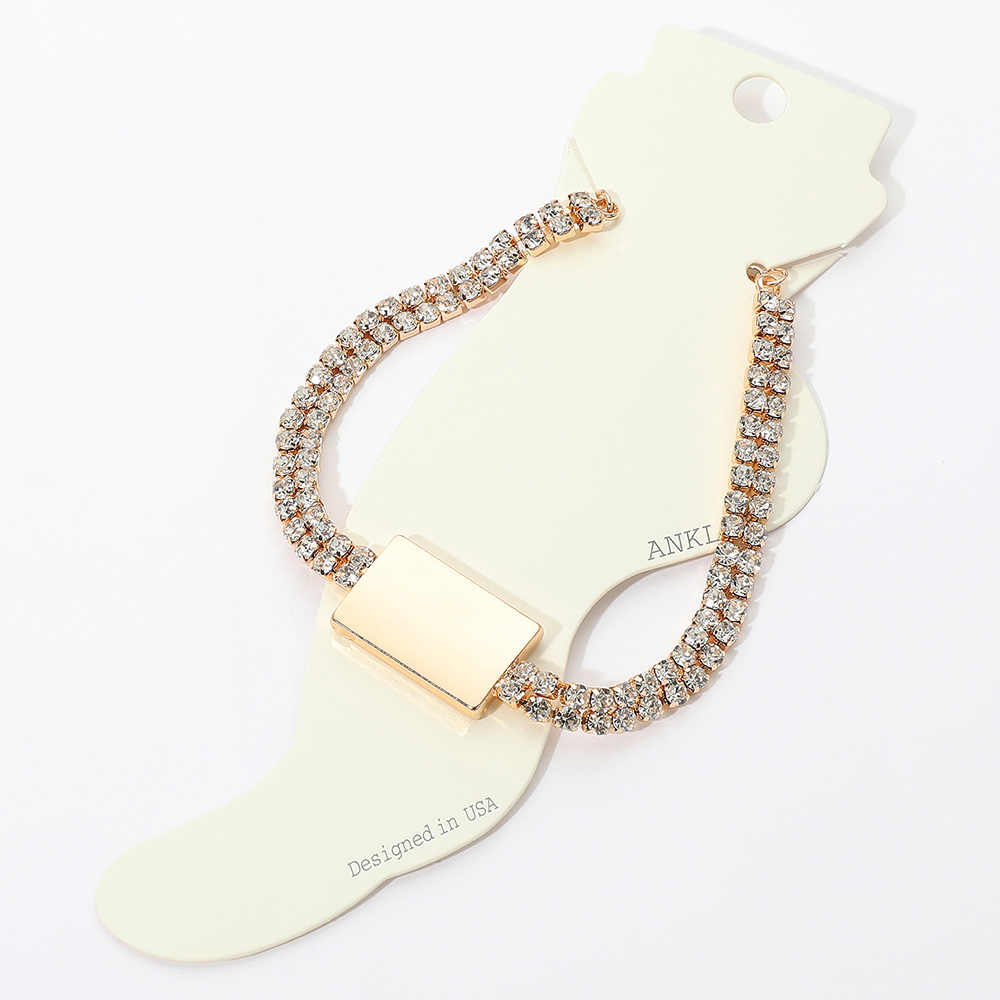 Metal Bar Pointed Rhinestone Paved Chain Anklet