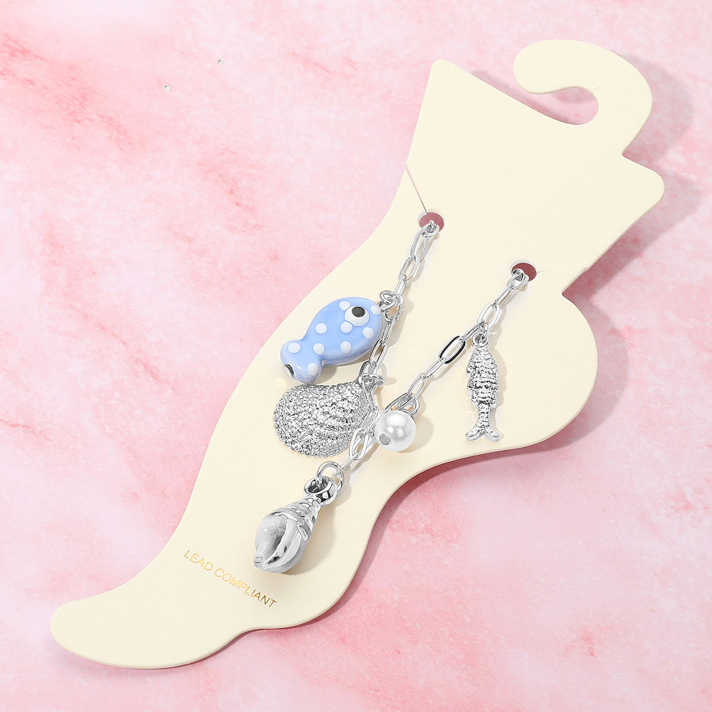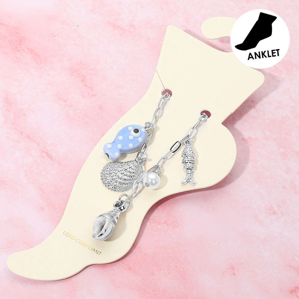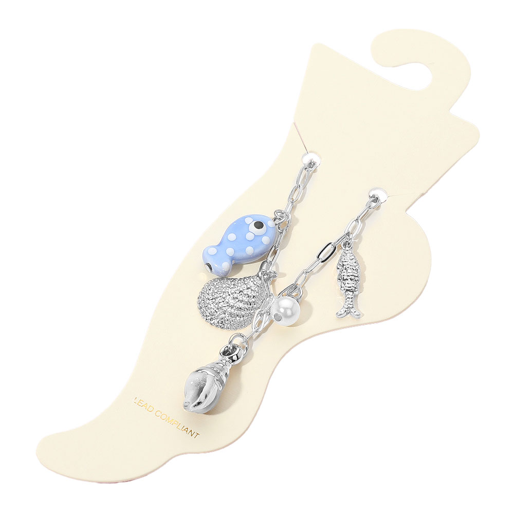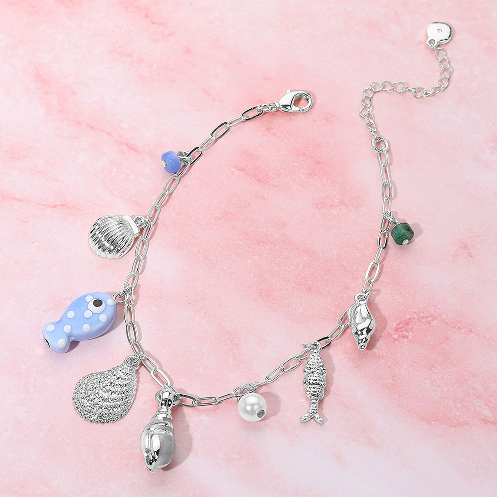 Metal Sea Shell Pearl Ceramic Fish Charm Station Paperclip Chain Anklet