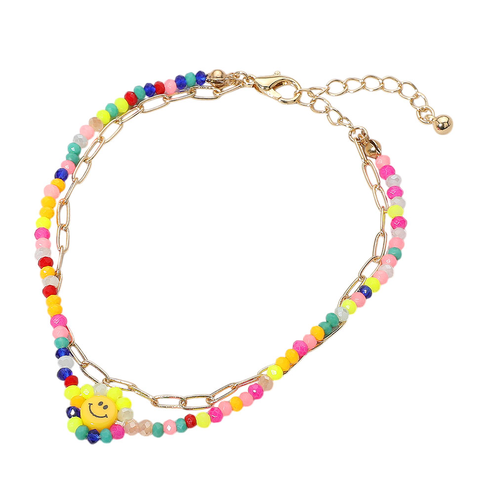 • Playful anklet featuring vibrant beads and a cheerful smiley charm. A fun accessory to brighten any outfit and add a youthful, carefree vibe.