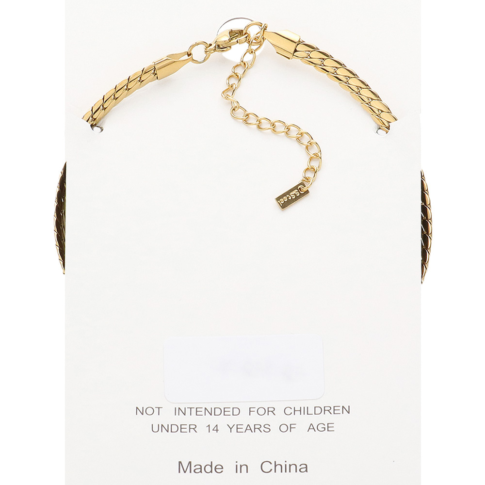 Stainless Steel Swirl Enamel Tilted Crescent Embossed Pendant Necklace