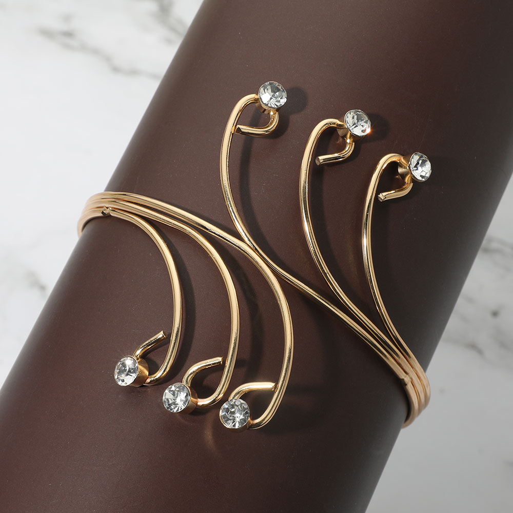 Details • Size : 3.25" H, 3.3" D • Adjustable / Cuff • Elegant spiral arm cuff bracelet featuring an open wrap design accented with sparkling crystals. Adjustable for a comfortable fit, this statement accessory adds modern sophistication and shine to any look. Perfect for evening wear, festivals, or elevating casual outfits with a touch of glamour. • Lead and Nickel Compliant