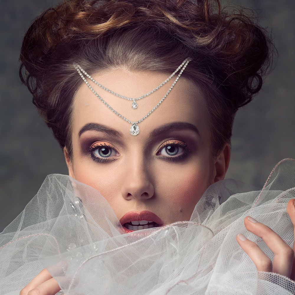 Teardrop Rhinestone Pointed Layered Head Chain