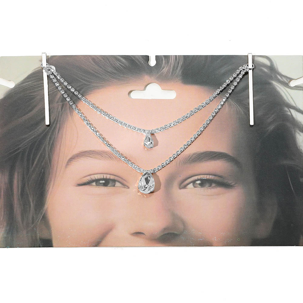 Teardrop Stone Pendant Rhinestone Paved Necklace