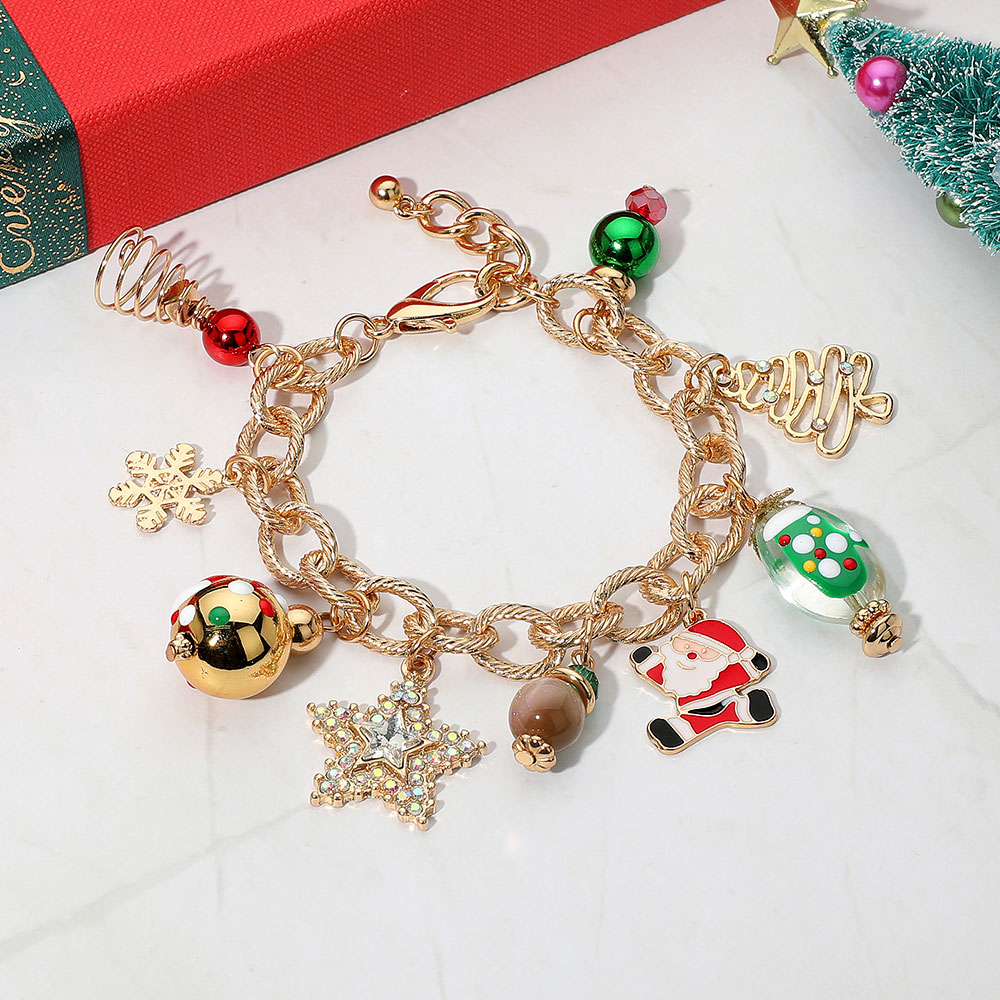 Christmas Tree Santa Star Snowflake Festive Holiday Themed Charm Bracelet