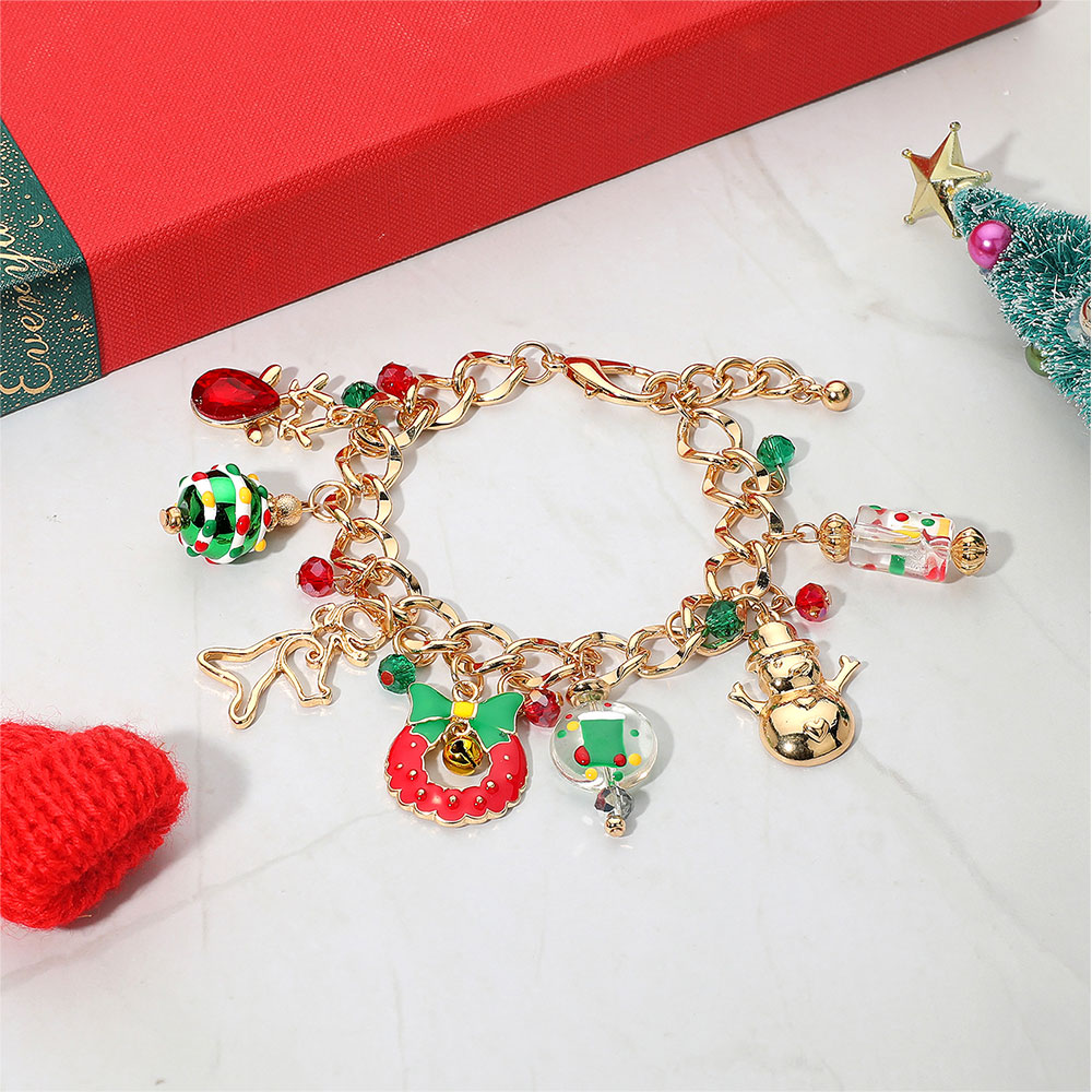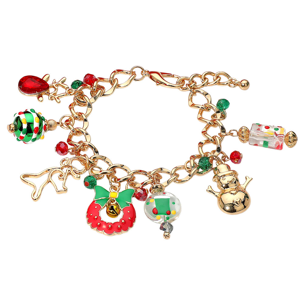 • Celebrate the magic of the season with this Christmas charm bracelet featuring delightful holiday pendants including a snowman, wreath, reindeer, and festive ornaments. A cheerful accessory that adds sparkle to holiday outfits and makes a perfect seasonal gift.