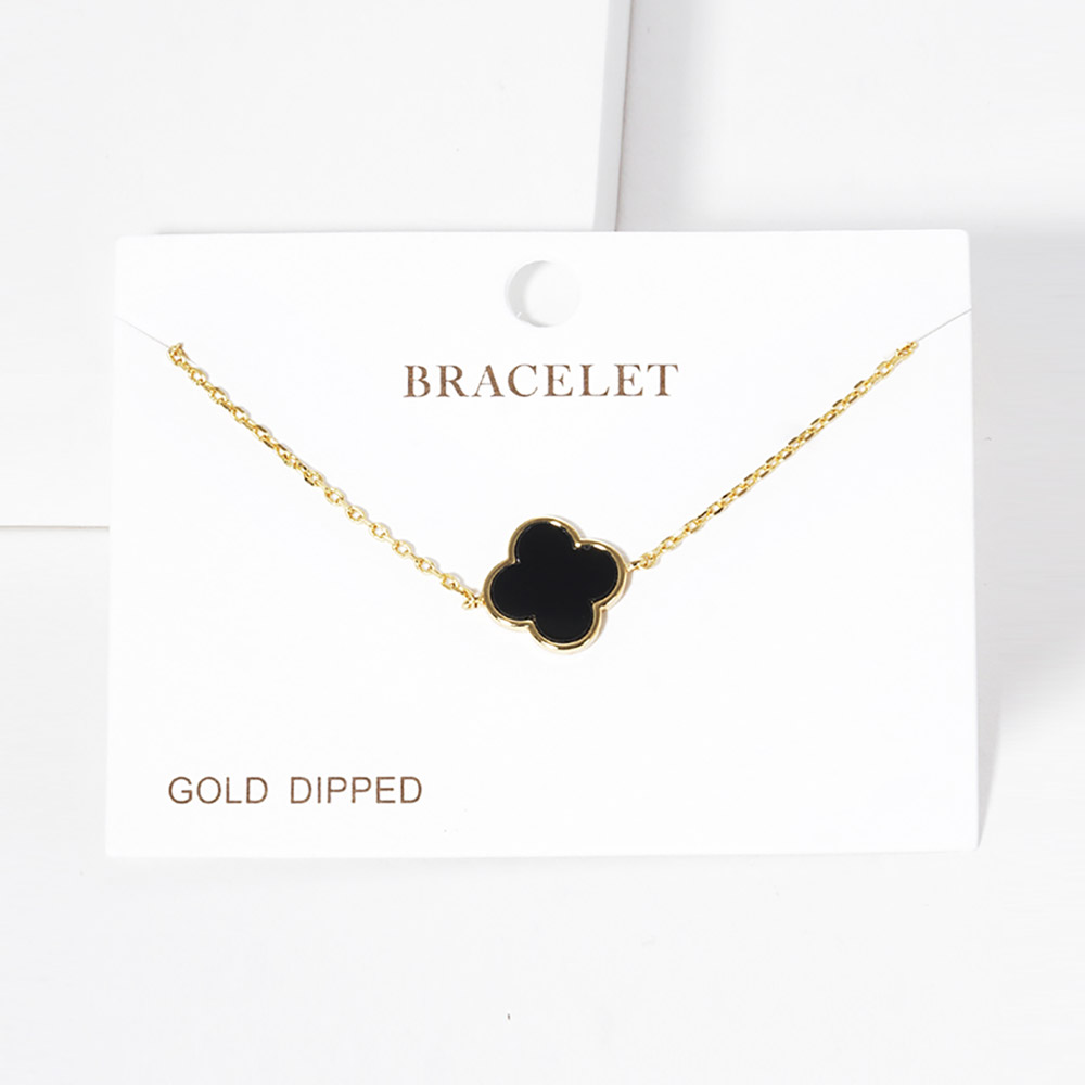 Gold Dipped Mother of Pearl Quatrefoil Charm Bracelet