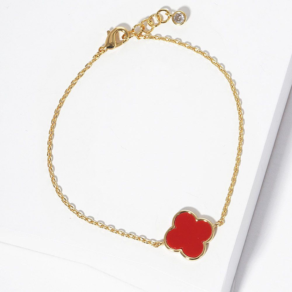Gold Dipped Mother of Pearl Quatrefoil Charm Bracelet