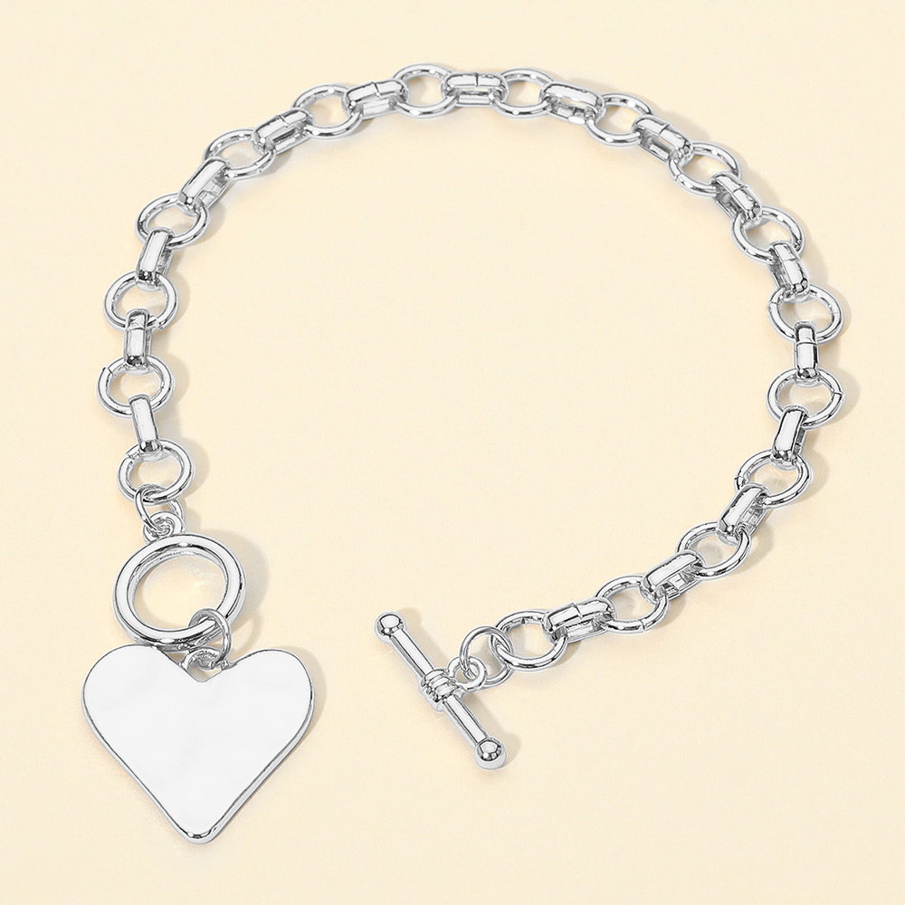 Details • Size : 7.5" L • Charm Size : 0.8" X 0.8" • Toggle Closure • Chic bracelet featuring a chain link design with a heart charm and toggle closure, adding a touch of playful elegance to any style. Perfect for layering or wearing solo, this accessory delivers a trendy and polished finish for everyday or special looks. • Lead and Nickel Compliant