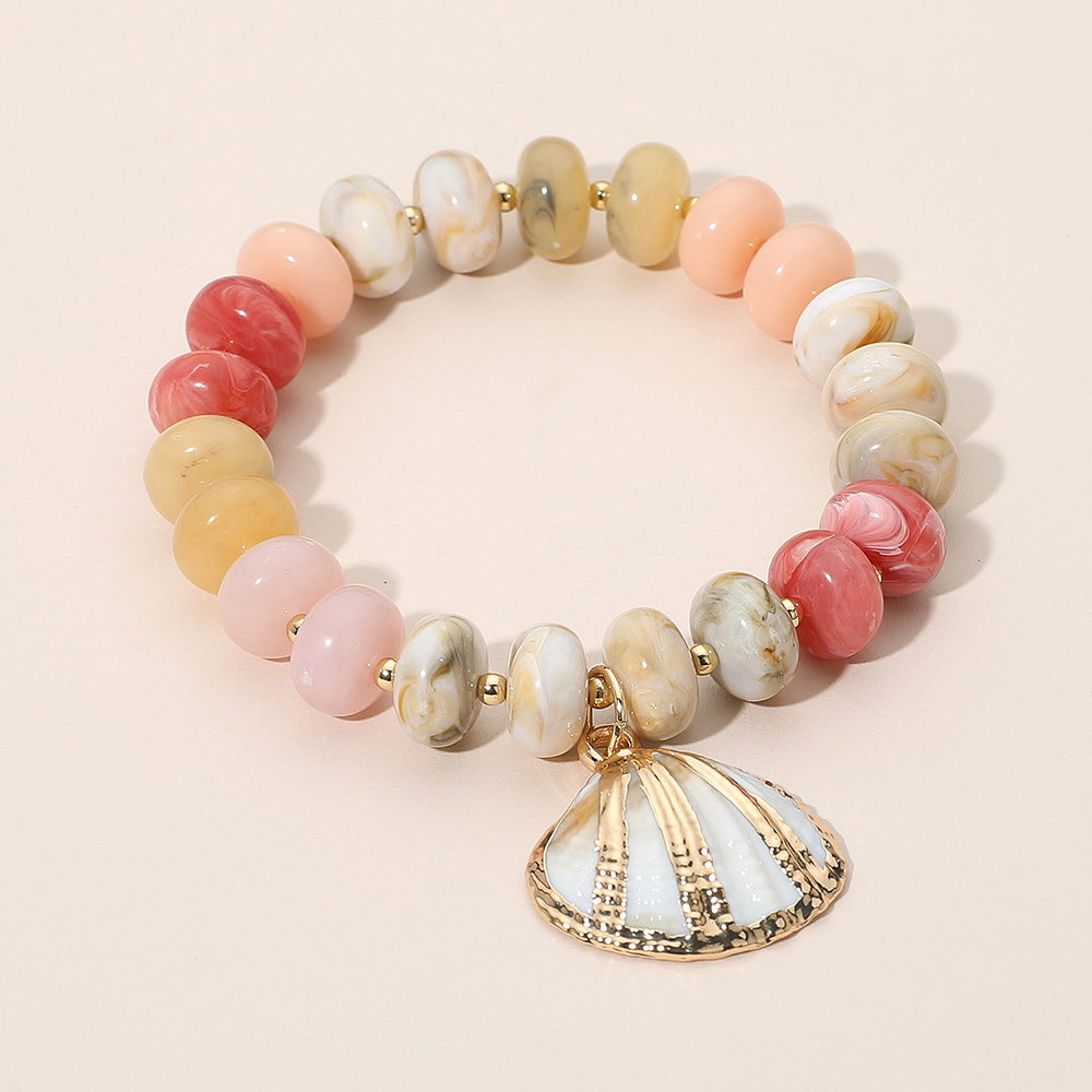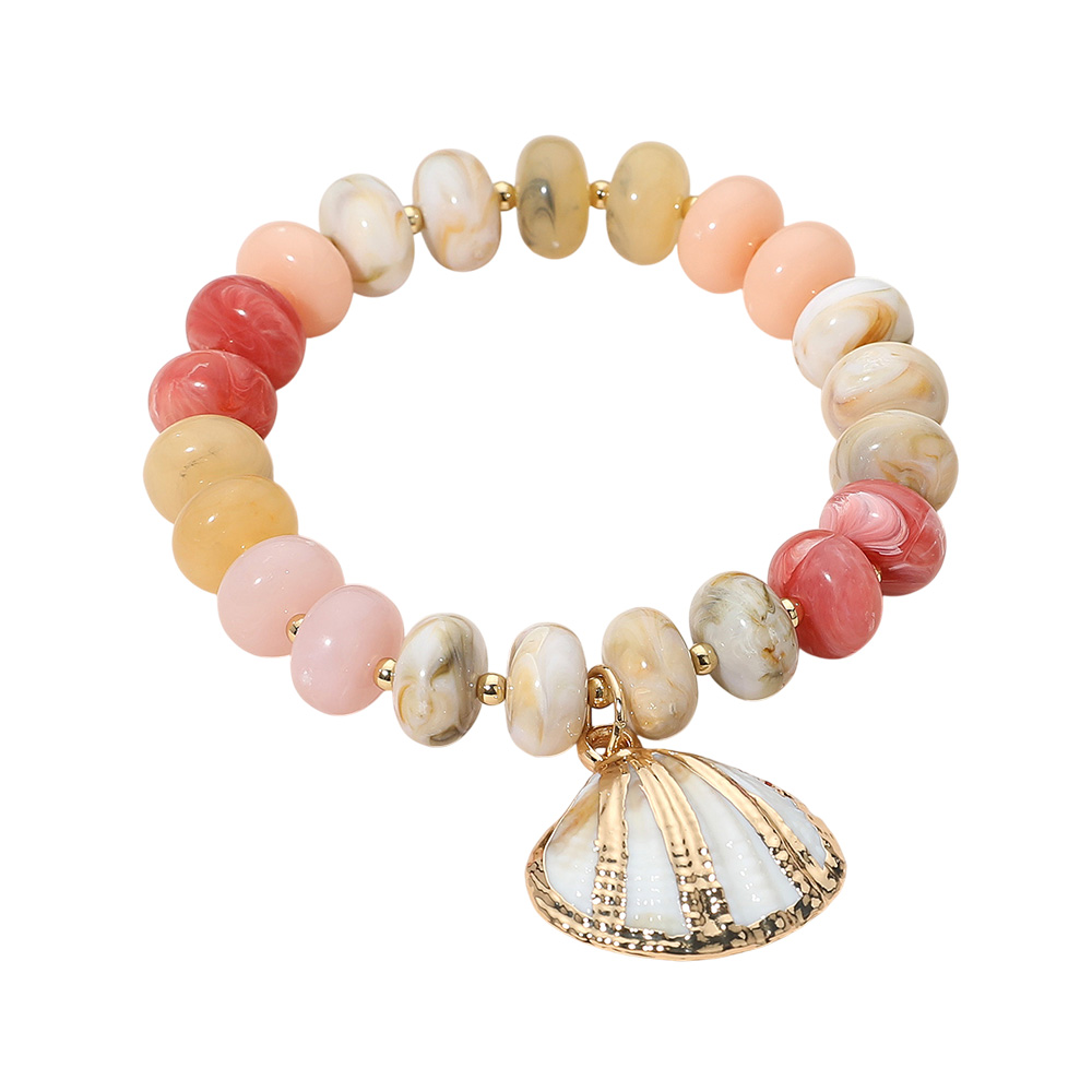 Seashell Charm Accent Resin Pebble Beaded Stretch Bracelet