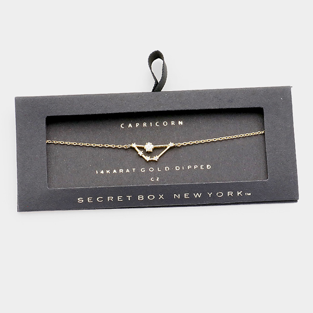 SECRET BOX_14K Gold Dipped CZ Capricorn Zodiac Sign Pendant Necklace