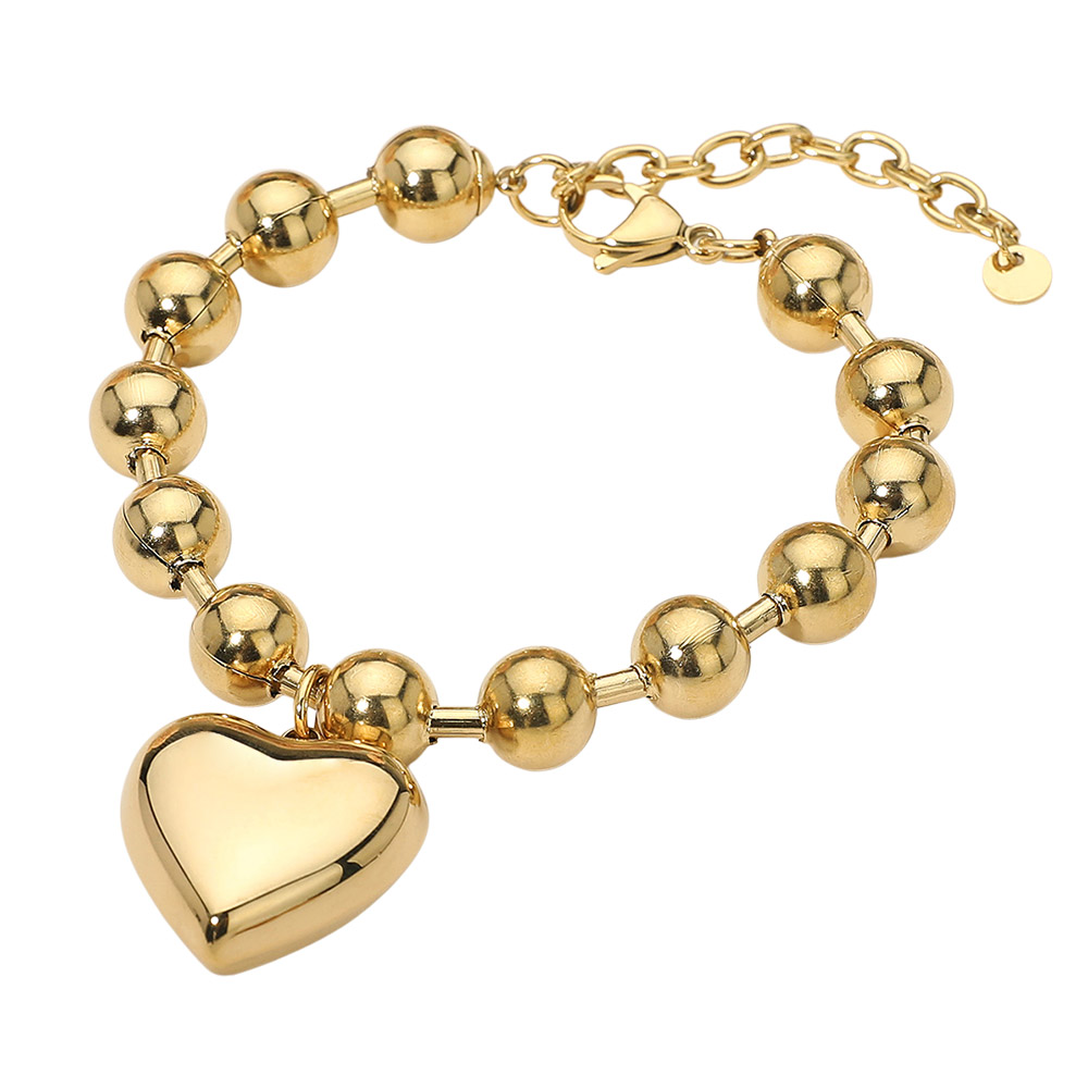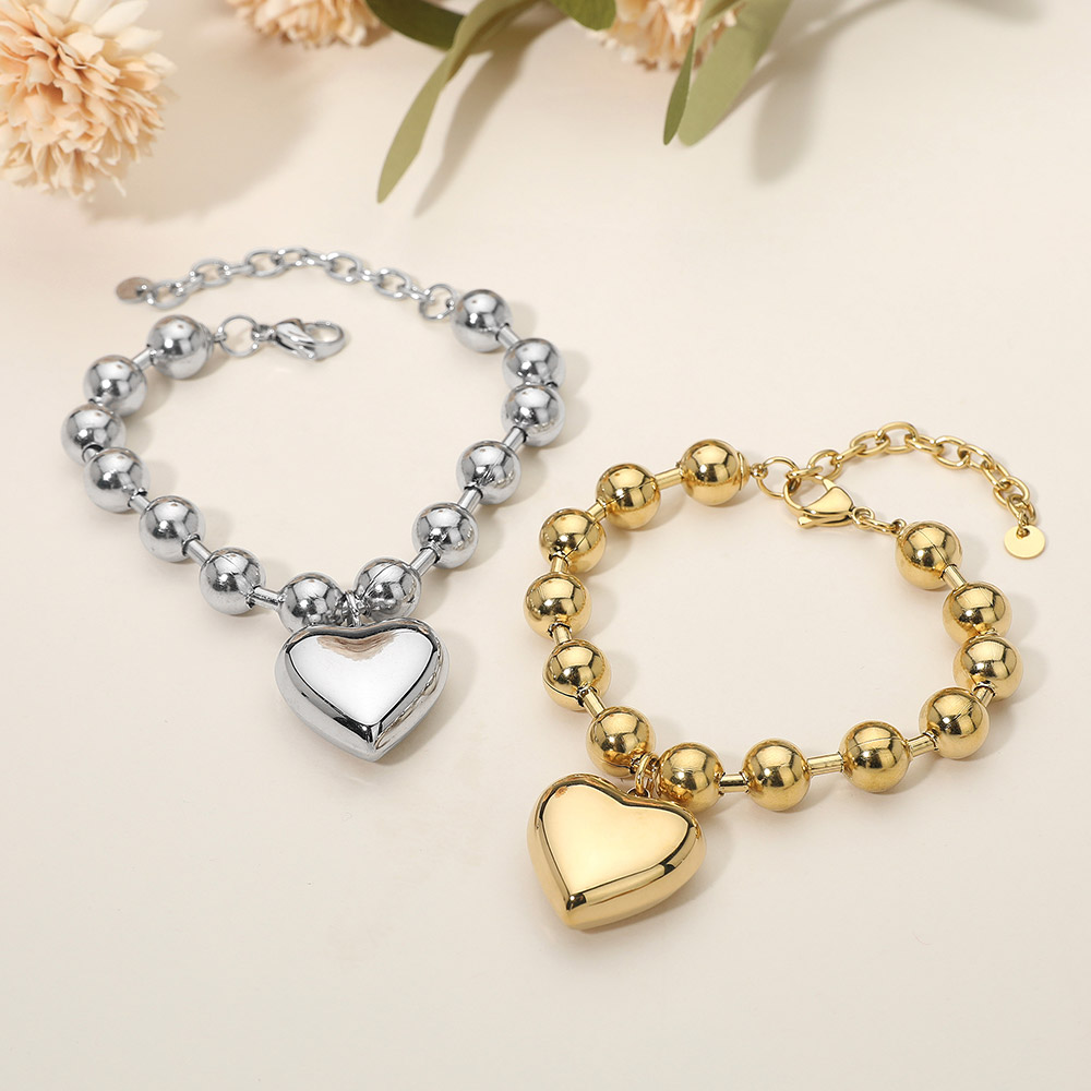 SECRET BOX_Stainless Steel Puffy Heart Charm Beaded Chain Bracelet