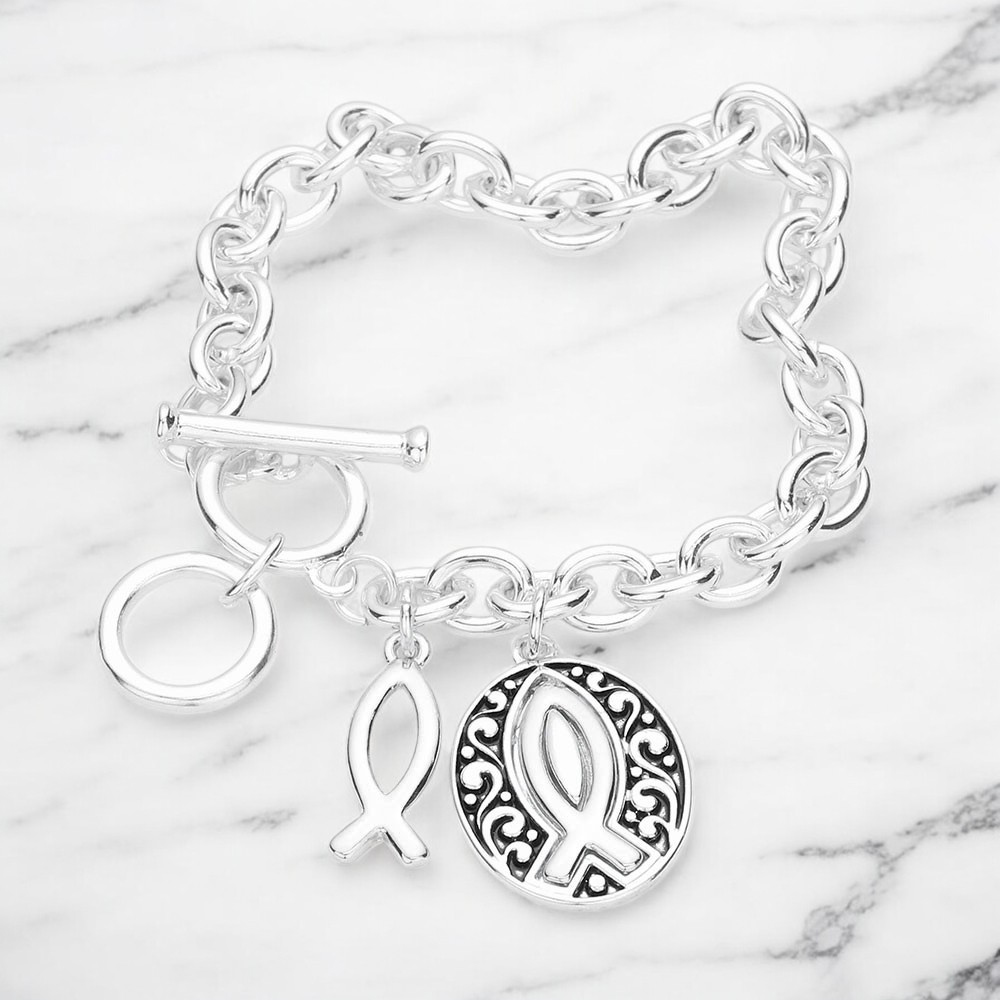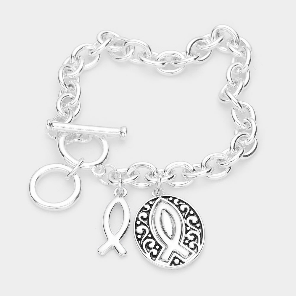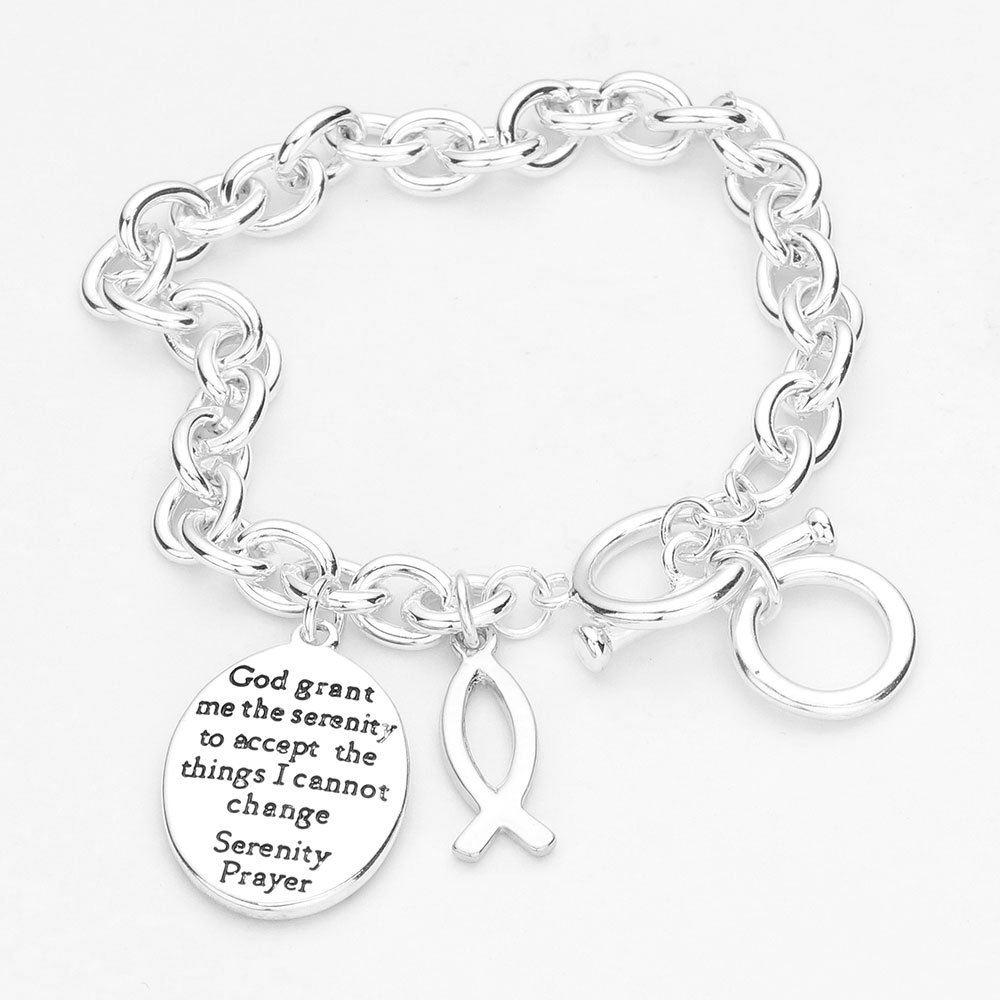 Serenity Prayer Metal Ichthus Message Charm Toggle Bracelet