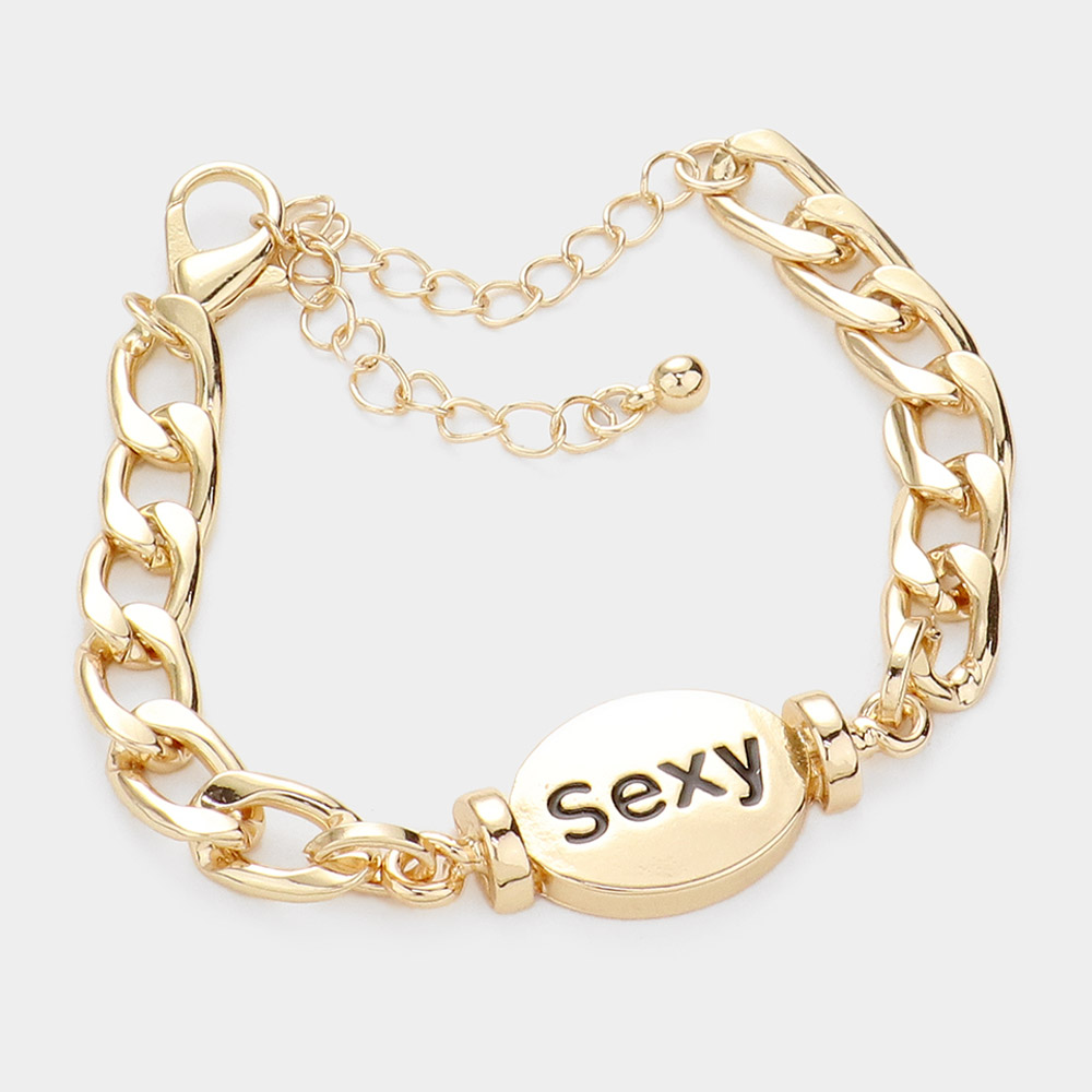 3PCS - SEXY Rhinestone Embellished Message Charm Metal Chain Anklets