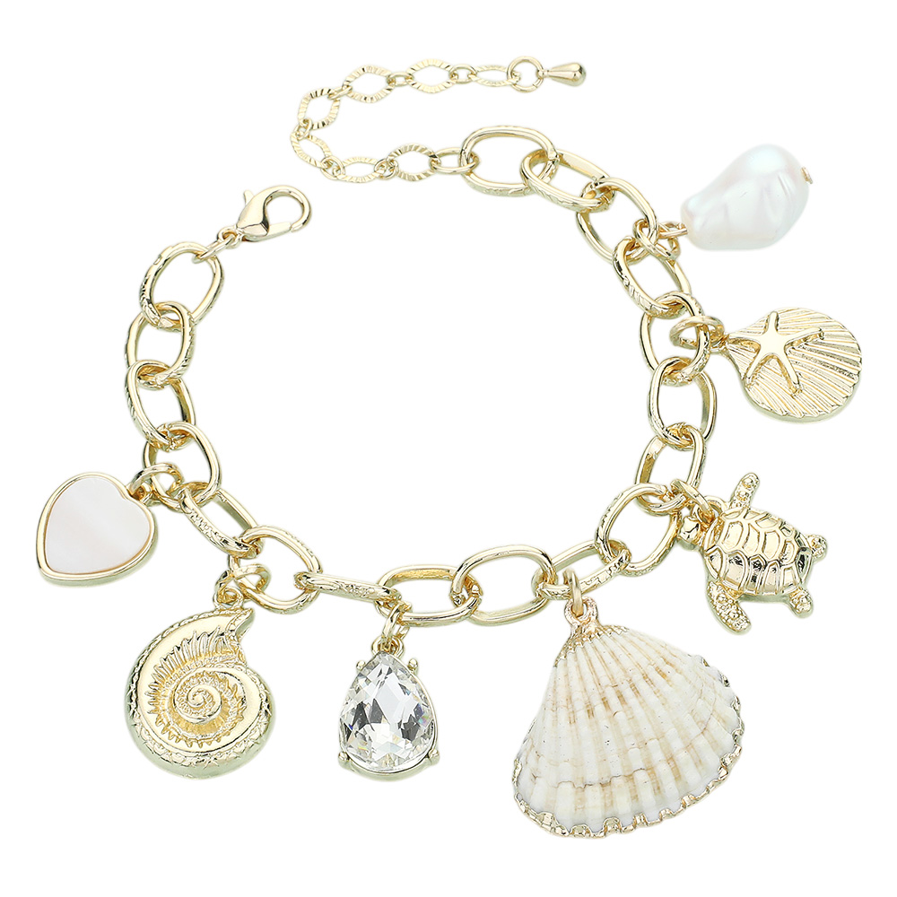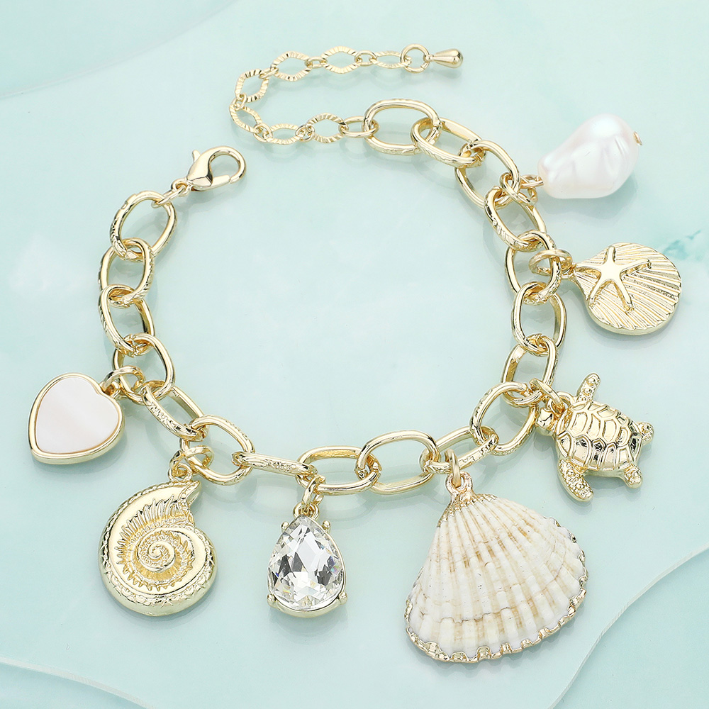 Shell Turtle Mother of Pearl Heart Pearl Charm Chain Bracelet