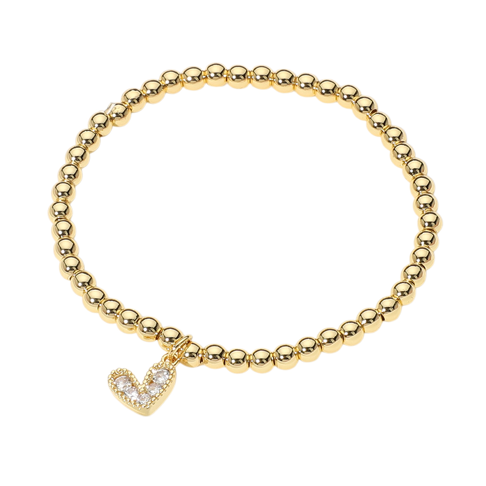 Stainless Steel Ball Heart Charm Beaded Stretch Bracelet