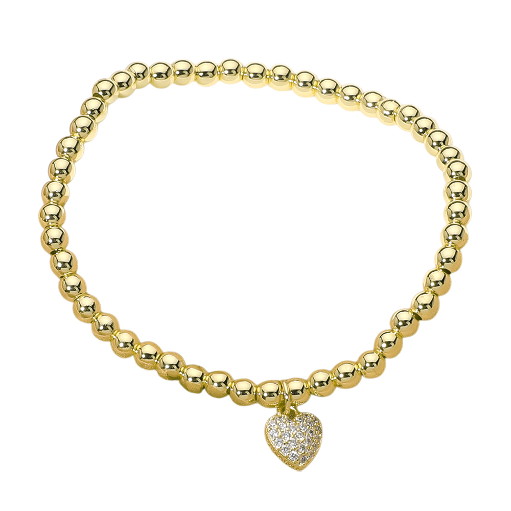 Stainless Steel Stone Paved Heart Charm Beaded Stretch Bracelet
