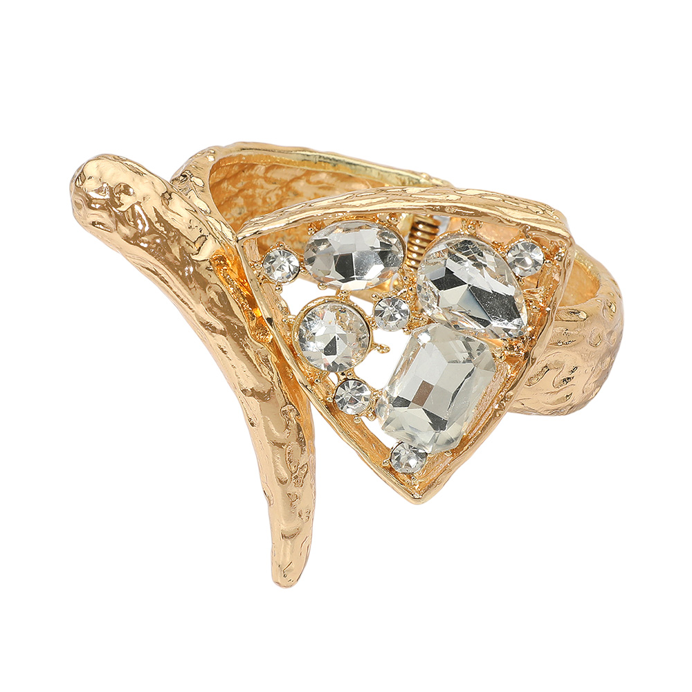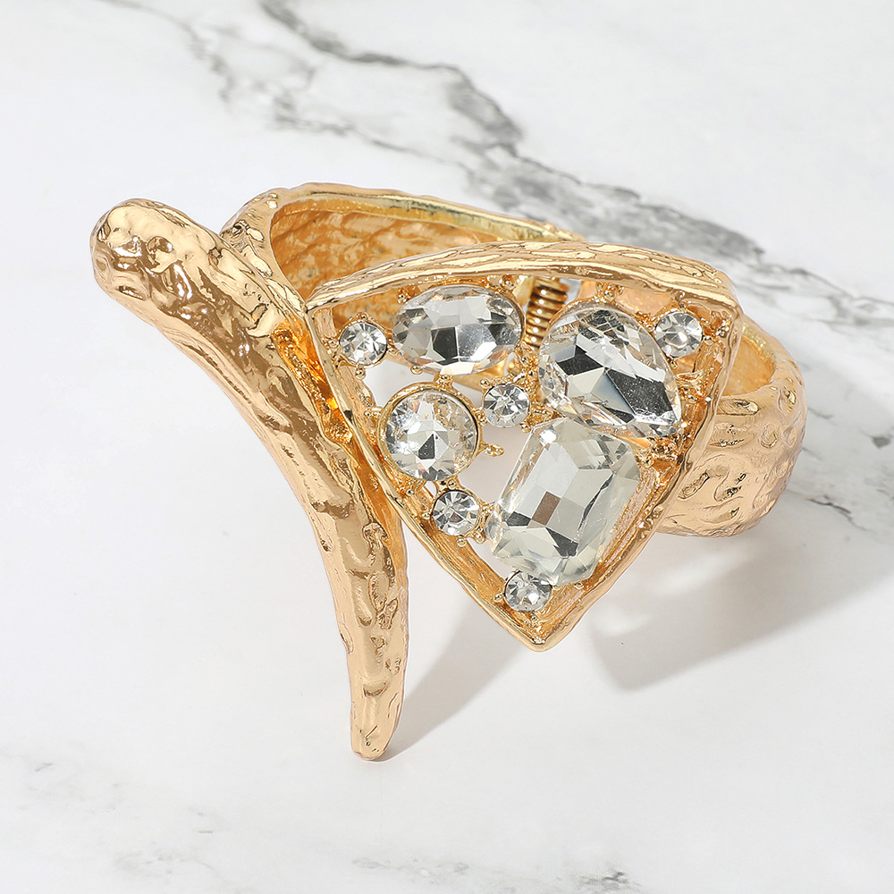 Details • Size : 2.7" H, 2.4" D • Hinged Closure / Cuff • Make a striking impression with this statement cuff bracelet featuring an abstract textured design adorned with sparkling crystals. The bold structure and adjustable fit create an eye-catching accessory perfect for parties, evening wear, or adding flair to everyday outfits. • Lead and Nickel Compliant