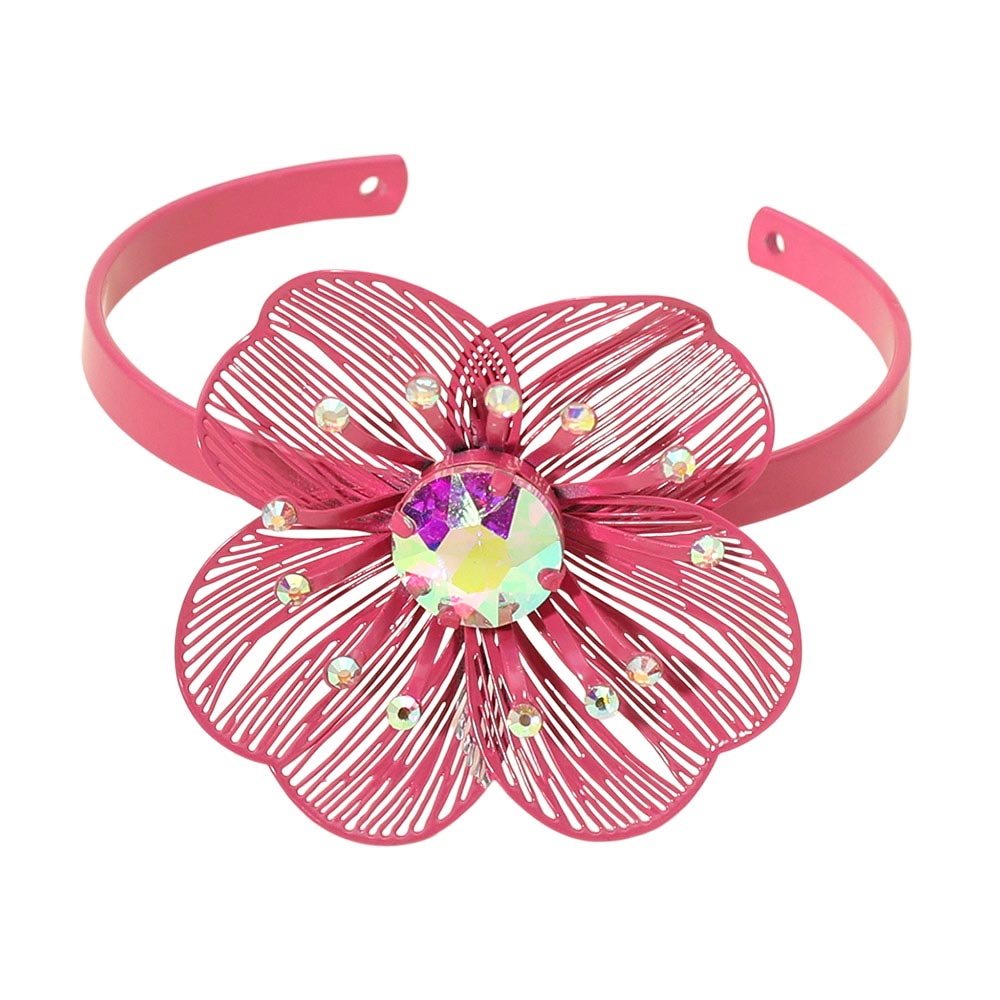 Bold Stone Accent Cutout Flower Accent Cuff Bracelet