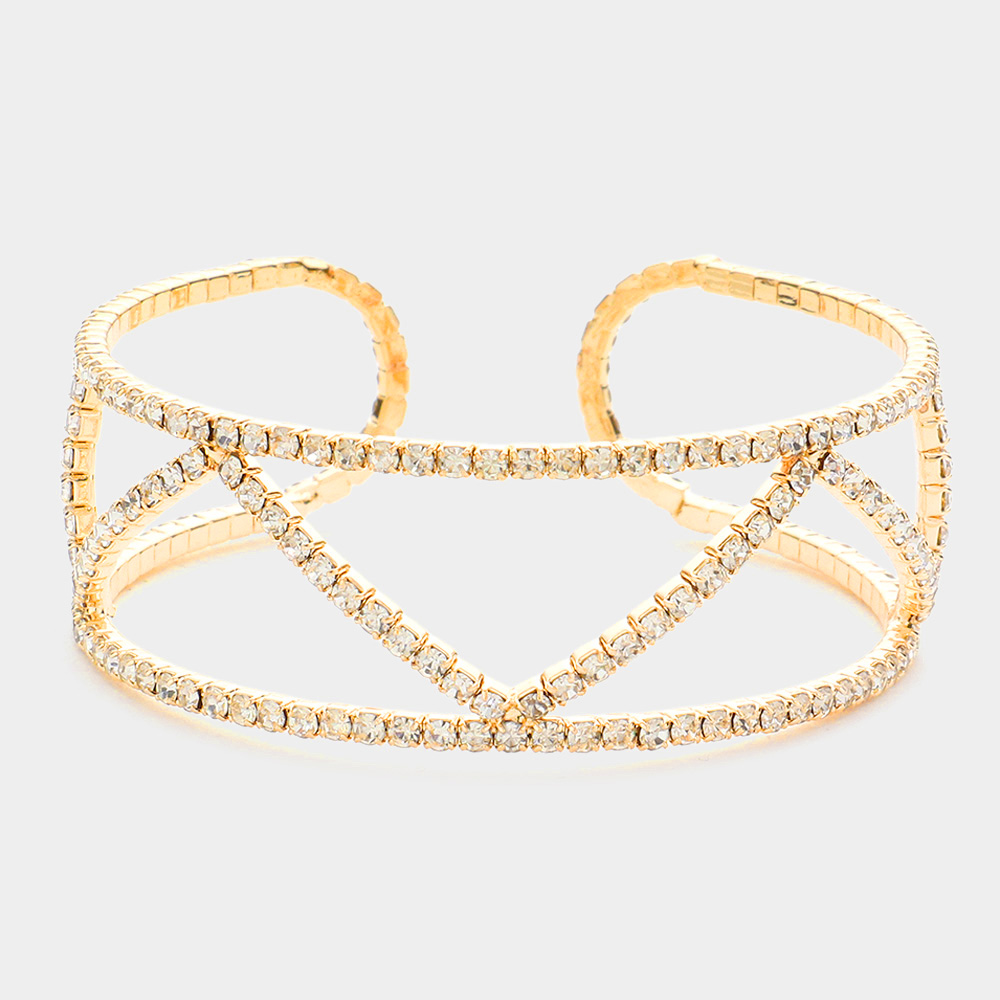 Brass Metal Rhinestone Embellished Cuff Evening Bracelet