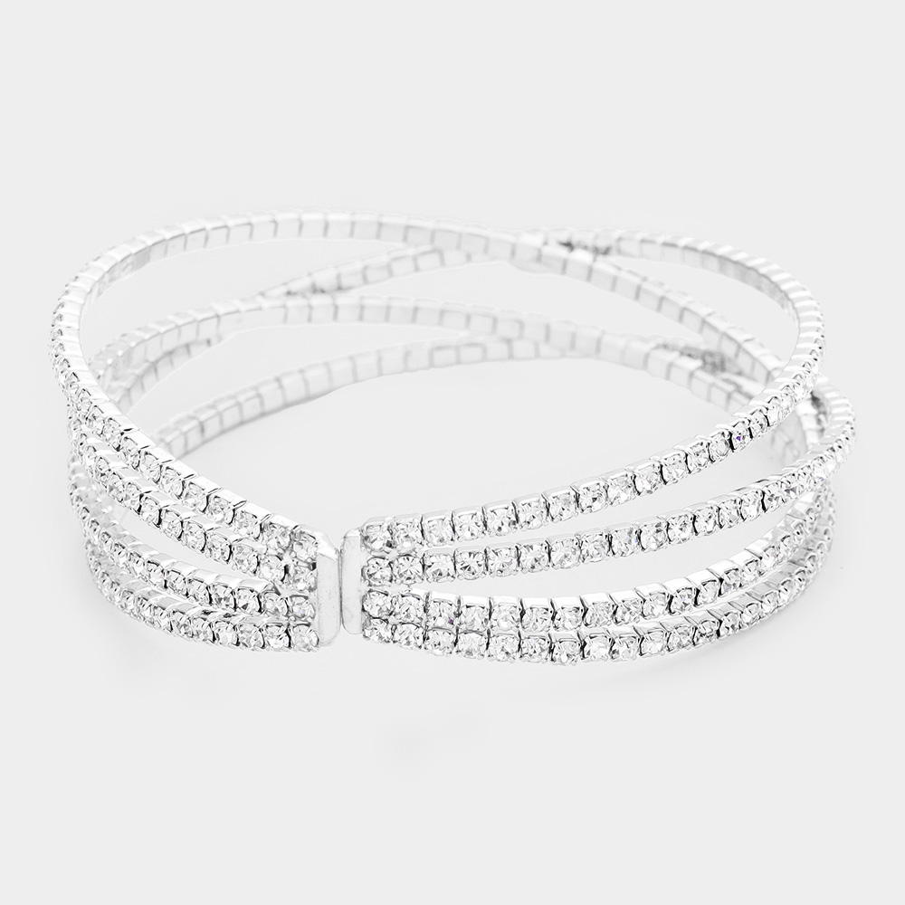 Crisscross Crystal Rhinestone Pave Cuff Bracelet