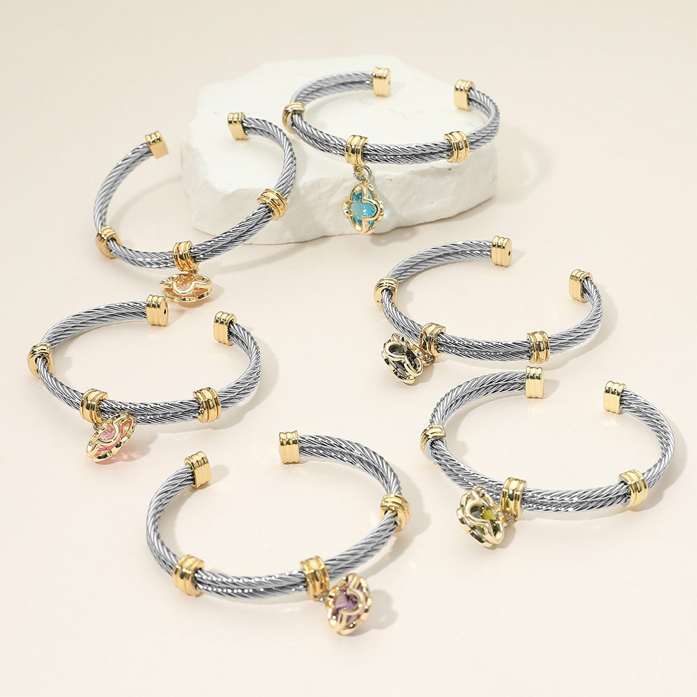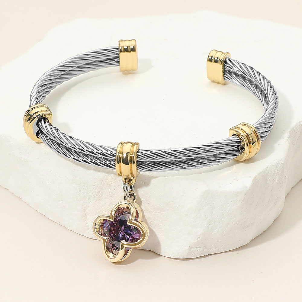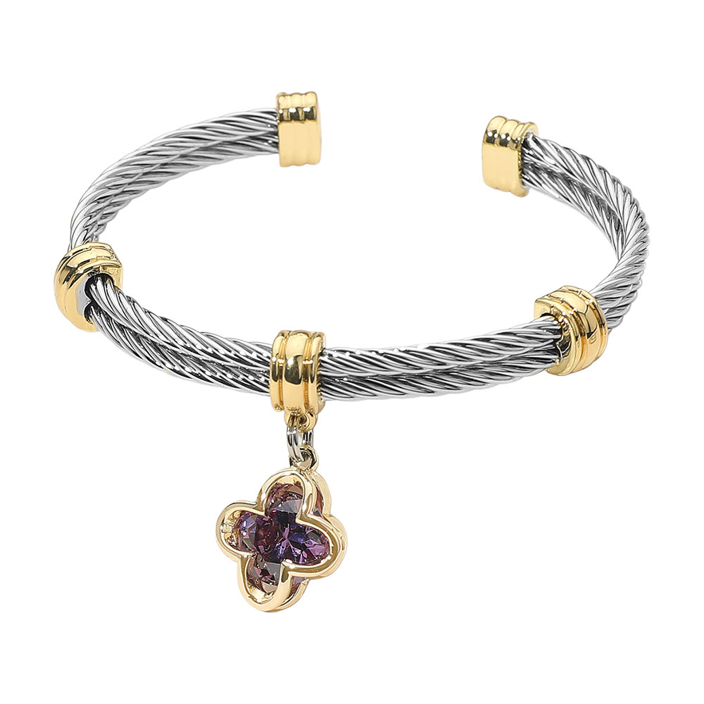 Details • Size : 0.3" H, 2.4" D • Charm Size : 0.6" X 0.6" • Stylish two-tone cable bracelet featuring a sparkling crystal charm accent, perfect for adding a touch of elegance to any look. This modern accessory blends sophistication and charm, making it ideal for both casual and dressy outfits. • CZ Cubic Zirconia