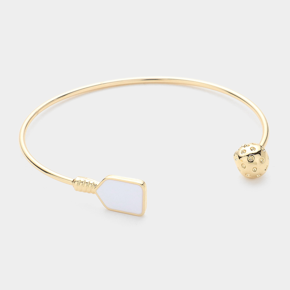 Enamel Pickleball Paddle Ball Cuff Bracelet
