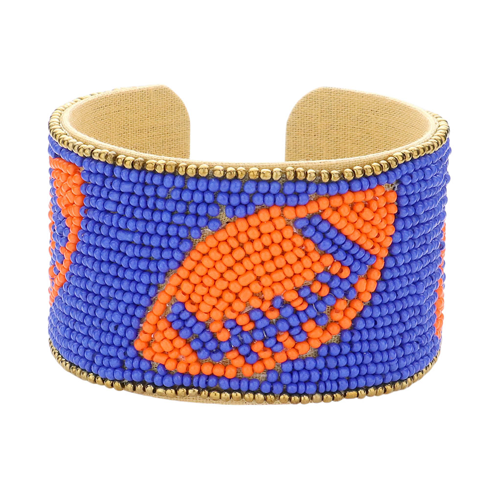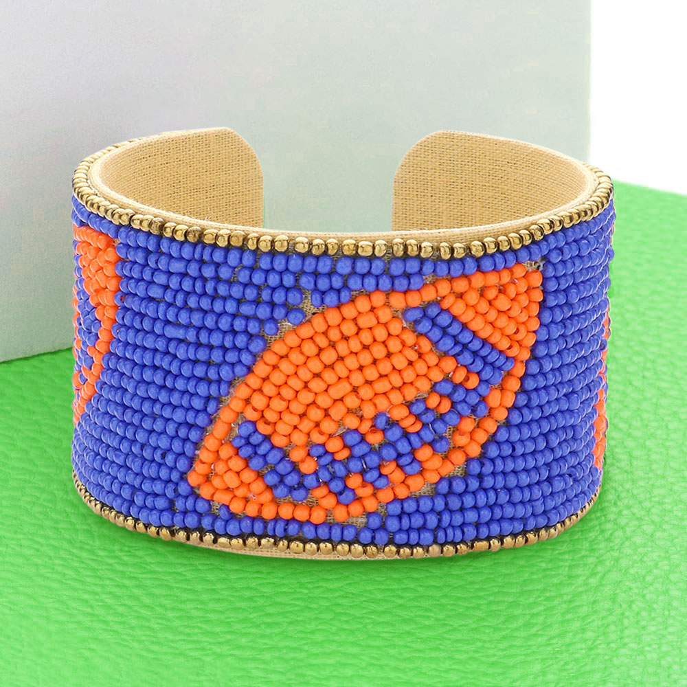 Game Day Seed Beaded Football Accented Cuff Bracelet