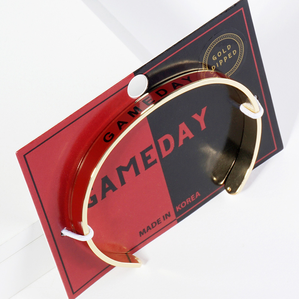 • Show your team spirit with this slim cuff bracelet featuring bold GAMEDAY lettering. Perfect for sporting events, tailgates, or casual outfits, it adds a fun and energetic touch. Easy to slip on and off, this bracelet offers a sleek and sporty vibe for any fan.