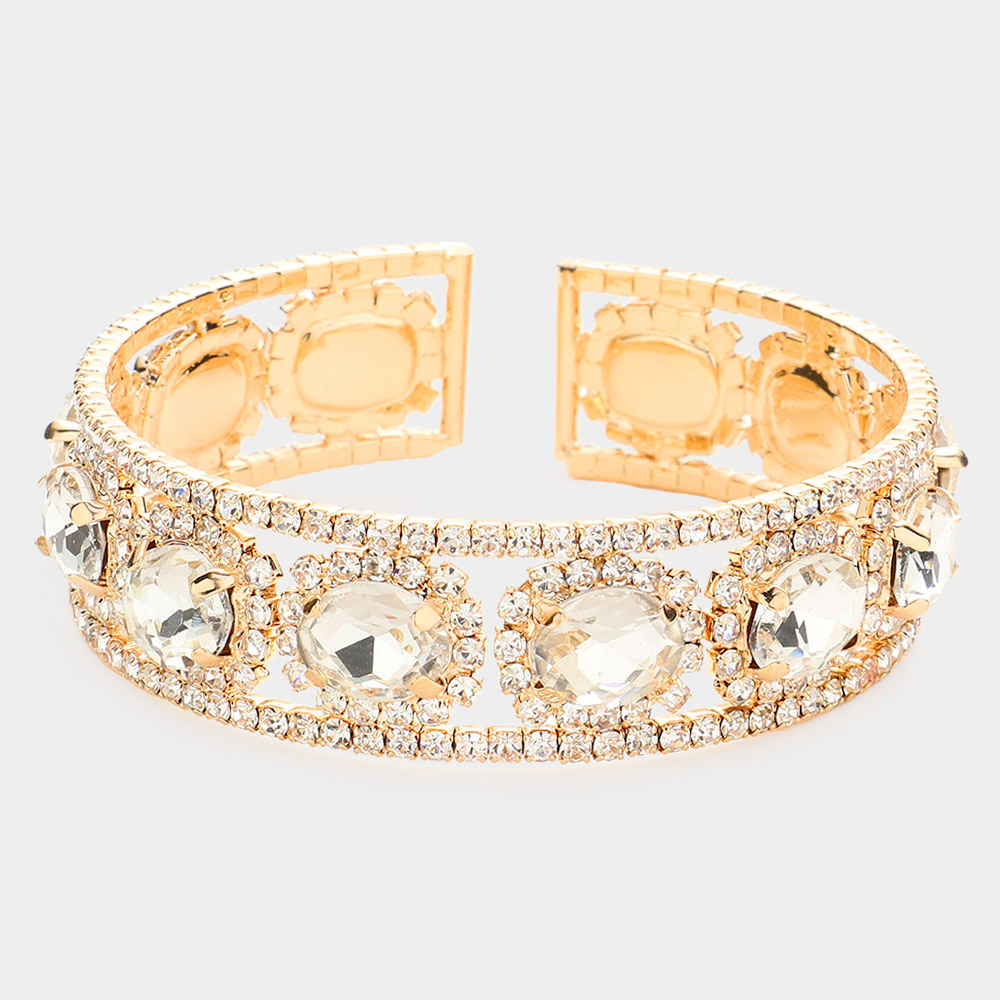 Glass Crystal Marquise Stone Cluster Stretch Bracelet