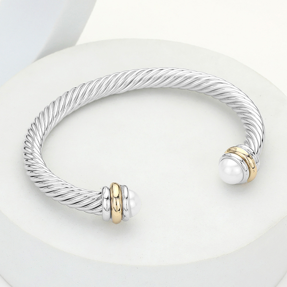 Pearl Tip Twisted Rope Cuff Bracelet