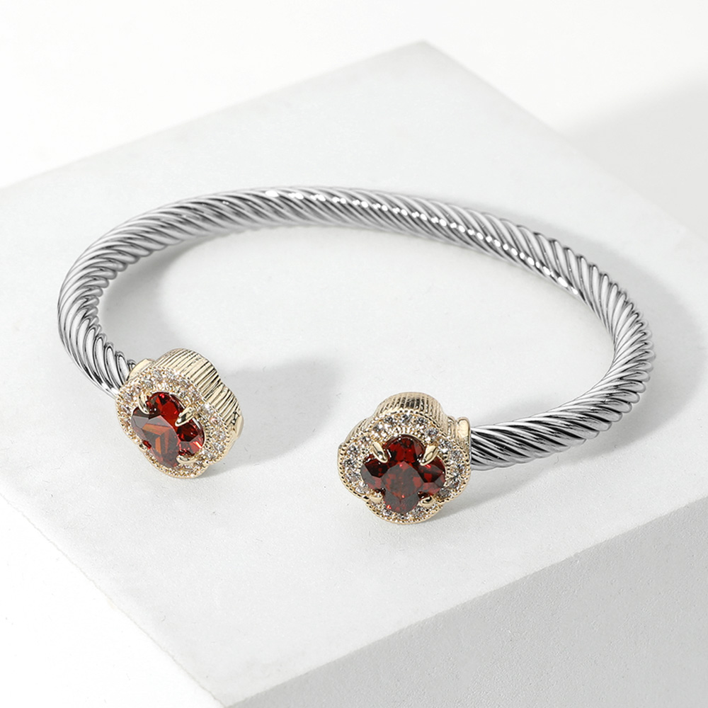 Quatrefoil CZ Stone Tip Twisted Cuff Bracelet Quatrefoil CZ Stone Tip Twisted Cuff Bracelet Quatrefoil CZ Stone Tip Twisted Cuff Bracelet
