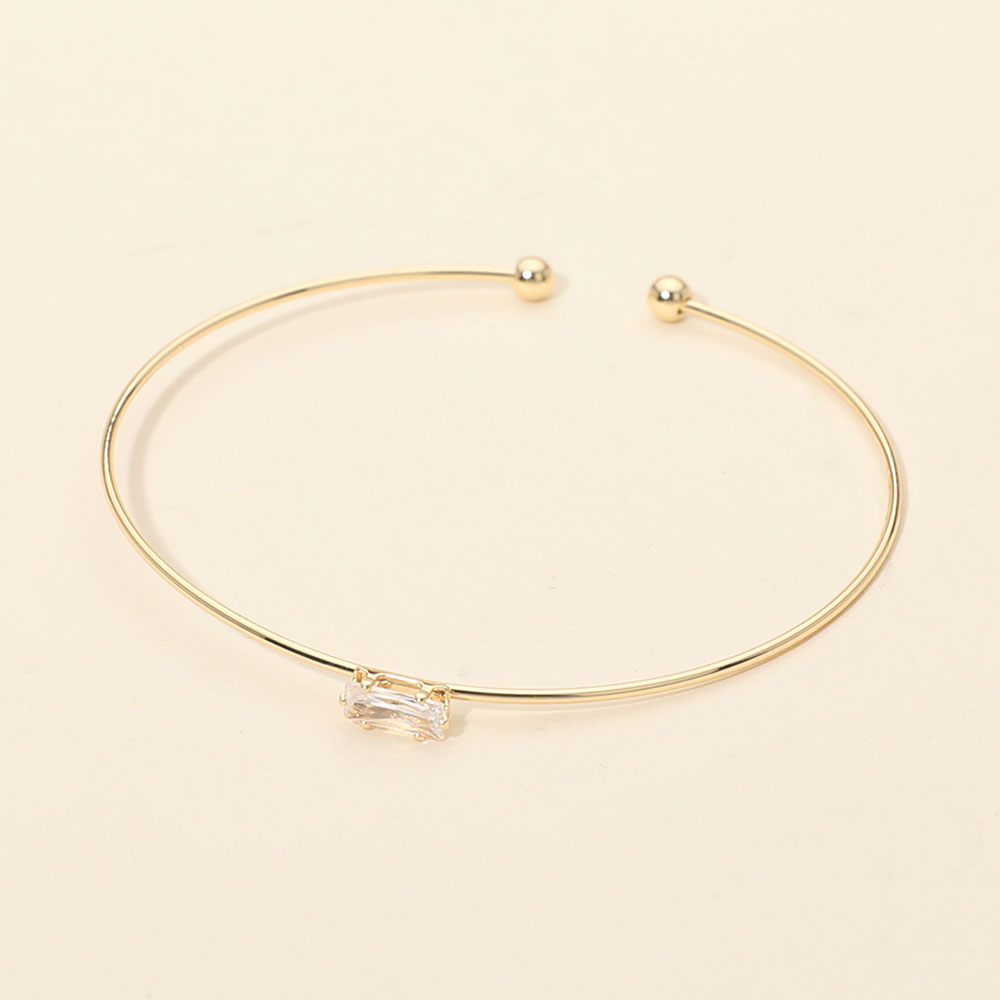 Details • Size : 0.2" H, 2.5" D • Cuff • Sleek open cuff bracelet designed with a single rectangular stone accent for a clean, modern look. This refined piece offers effortless elegance and easy styling, making it ideal for everyday wear, stacking with other bracelets, gifting, and versatile fashion jewelry collections. • Brass