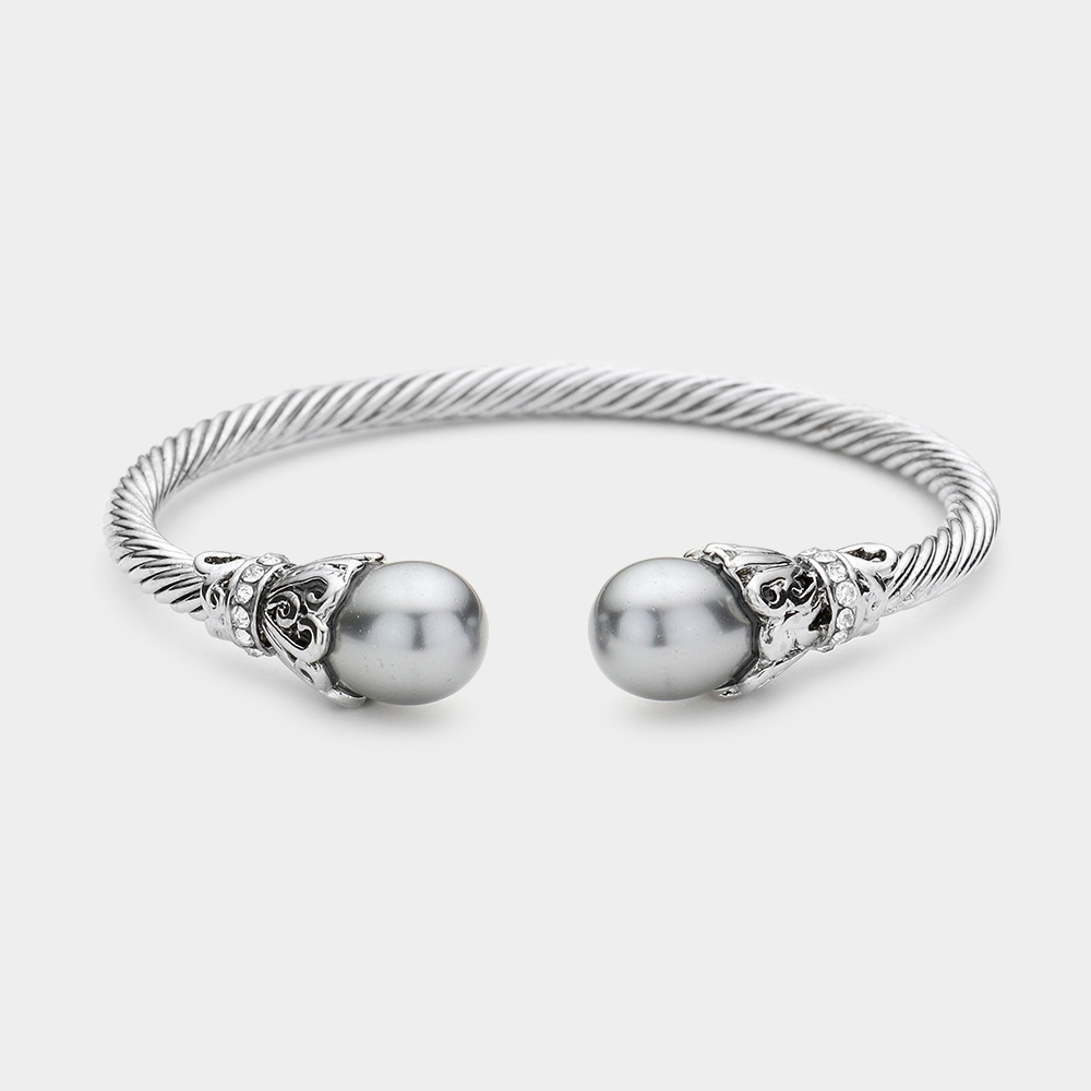 14K Gold Plated CZ Heart Stone Pearl Cluster Metal Cross Charm Station Bracelet