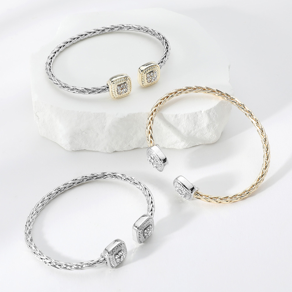 Two Tone Stone Paved Square Tip Cuff Bracelet