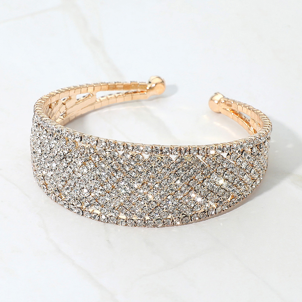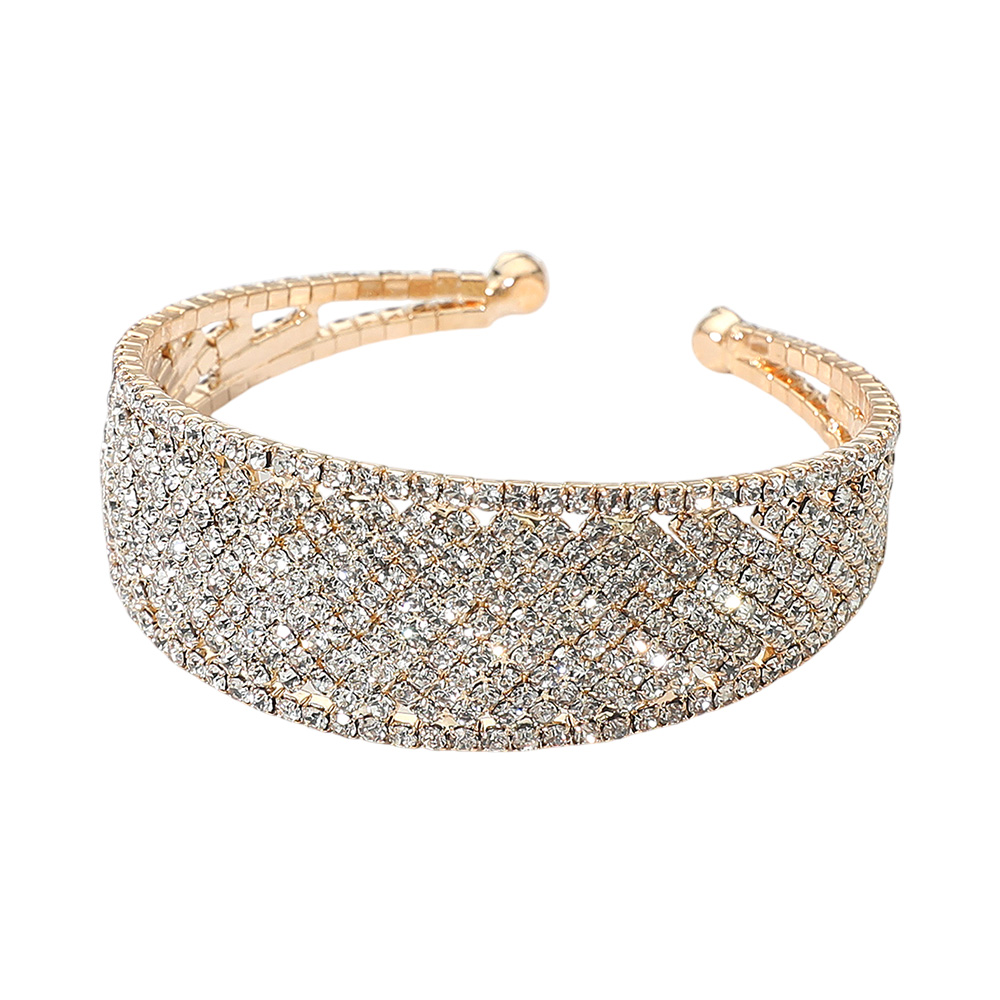 • Shine bright with this wide rhinestone cuff bracelet featuring a full pavĂ© crystal design. A glamorous statement piece perfect for weddings, parties, or elevating evening looks with bold, dazzling sparkle.