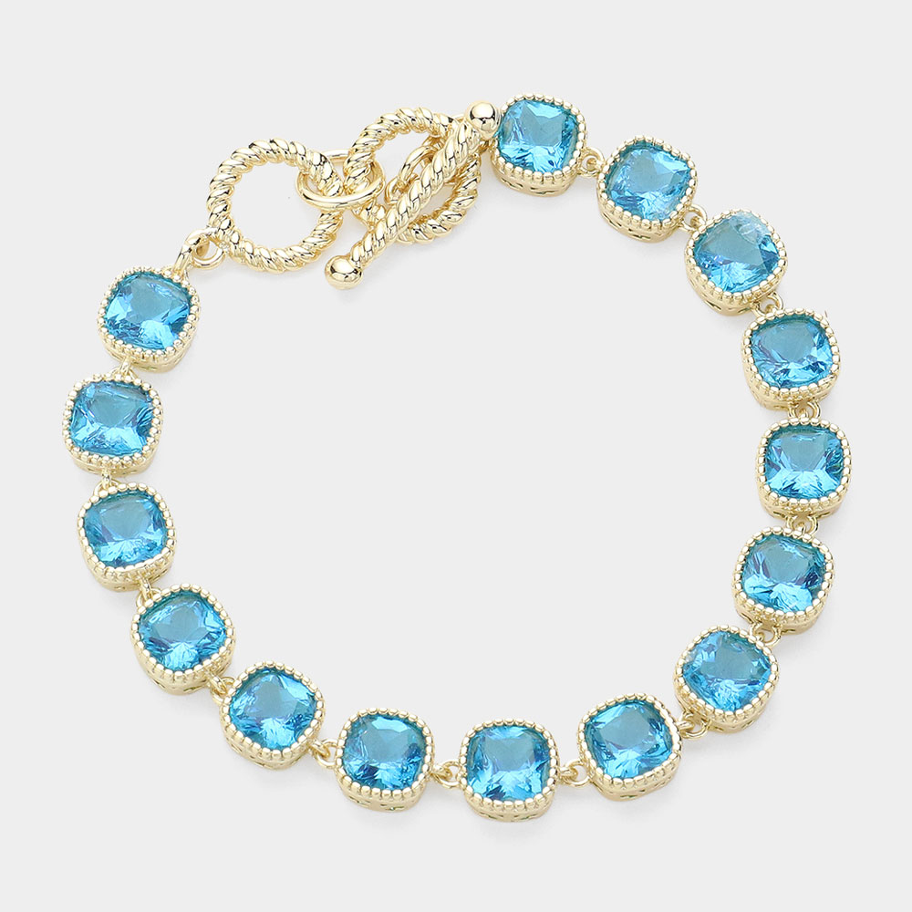 14K Gold Plated Square CZ Stone Link Evening Toggle Bracelet