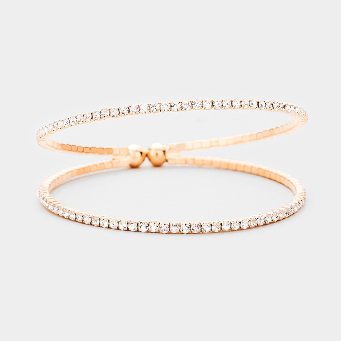 2Row Split Layer Rhinestone Pave Cuff Evening Bracelet
