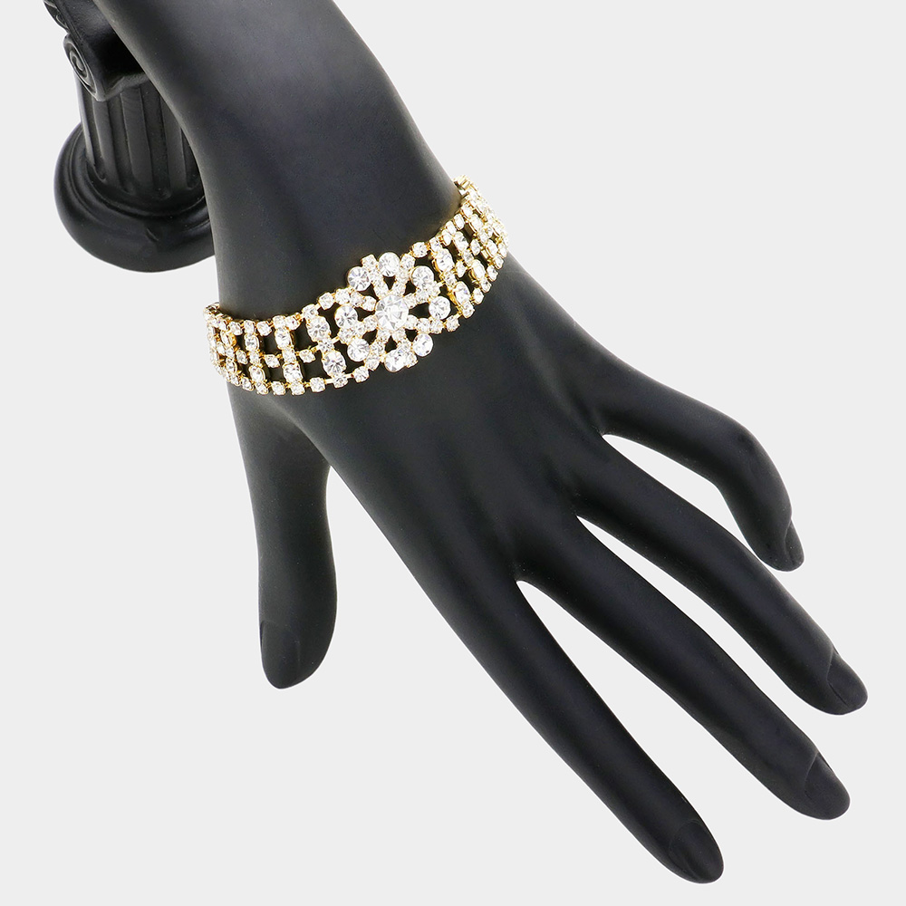 Gemstone Studded Wide Bangle Statement Stretch Bracelet