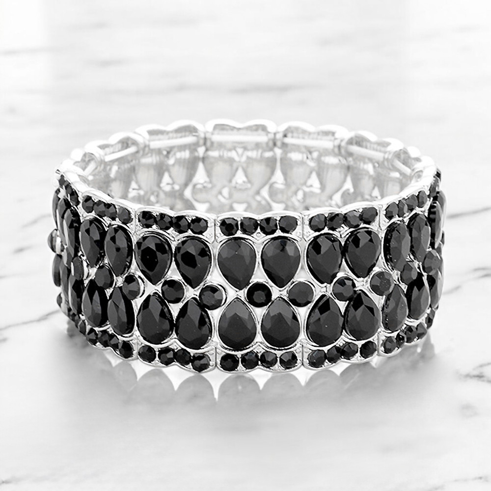 Teardrop Glass Stone Cluster Evening Stretch Bracelet