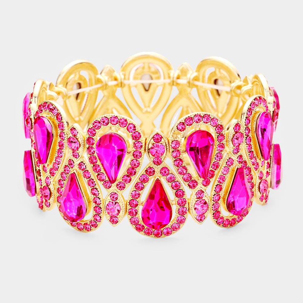 Crystal Glass Teardrop Evening Stretch Bracelet