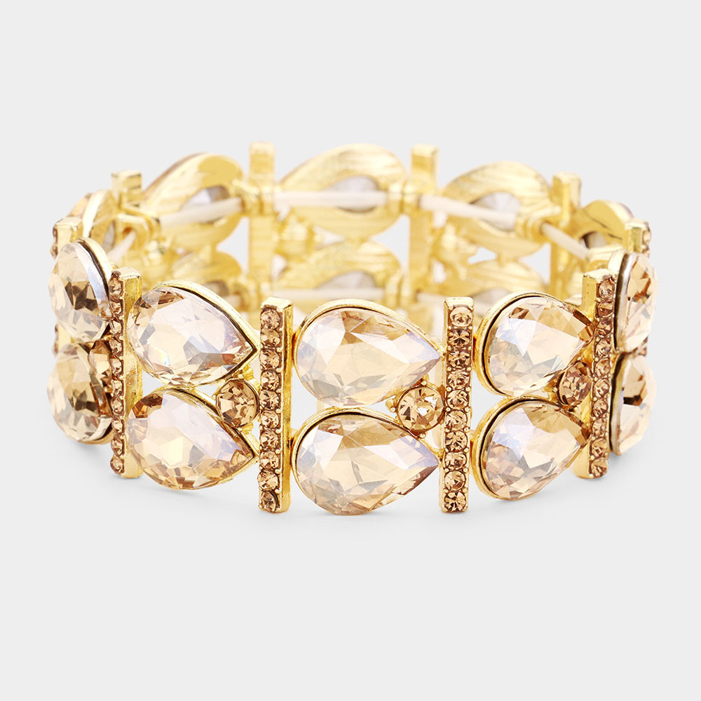 Crystal Teardrop Rhinestone Pave Stretch Evening Bracelet