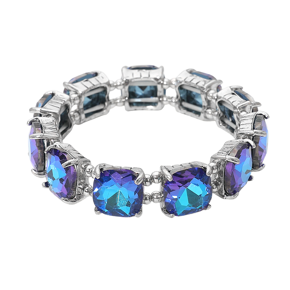 American USA Cushion Square Stone Stretch Evening Bracelet