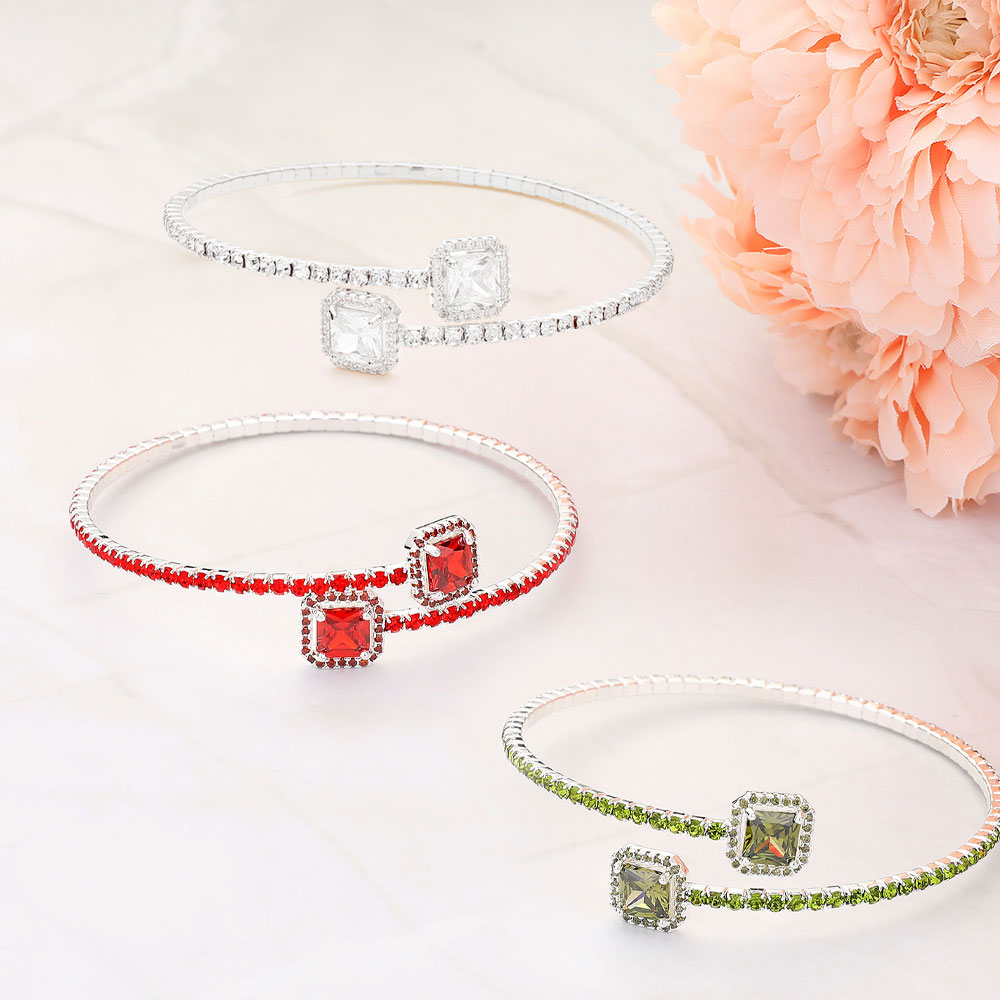 CZ Square Stone Tip Rhinestone Paved Evening Bracelet