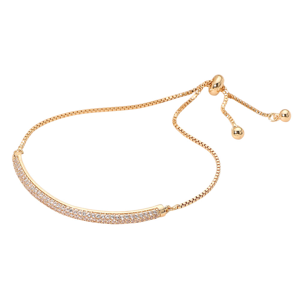 Details • Size : 0.2" H, 10" L • Adjustable • This adjustable pave bar bracelet brings timeless sophistication with its sleek silhouette and sparkling crystal accents. Designed for versatility and comfort, it transitions effortlessly from day to evening, making it the perfect accessory to complement any refined or modern look. • CZ Cubic Zirconia • Lead and Nickel Compliant