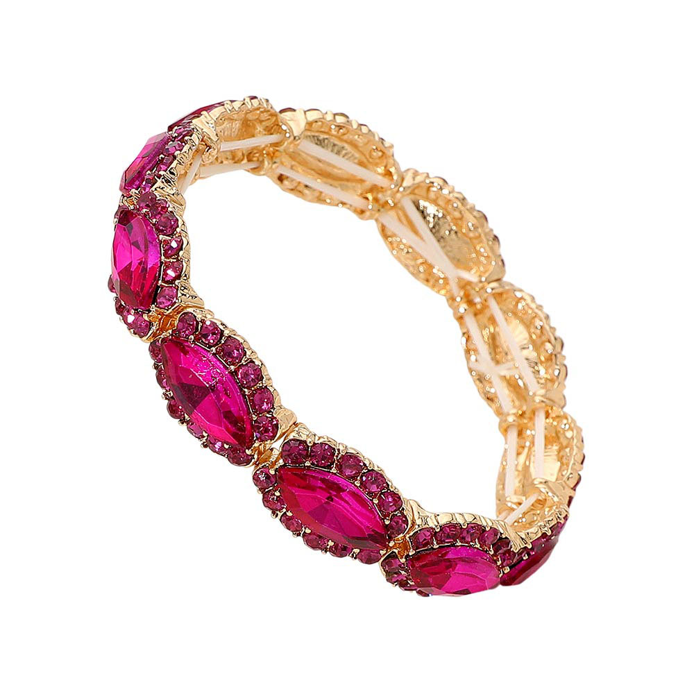 Faceted Marquise Cut Stone Beaded Stretch Evening Bracelet