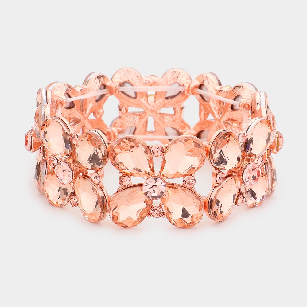 Floral Teardrop Glass Crystal Stretch Evening Bracelet