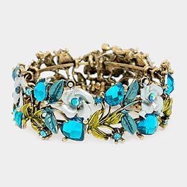 Details • Size : 1" H • Adjustable • Brighten your look with a floral statement bracelet featuring vibrant petals, sparkling accents, and intricate detailing. Adjustable for a comfortable fit, this bold accessory brings a touch of whimsy and elegance, making it perfect for special occasions or adding flair to everyday style.