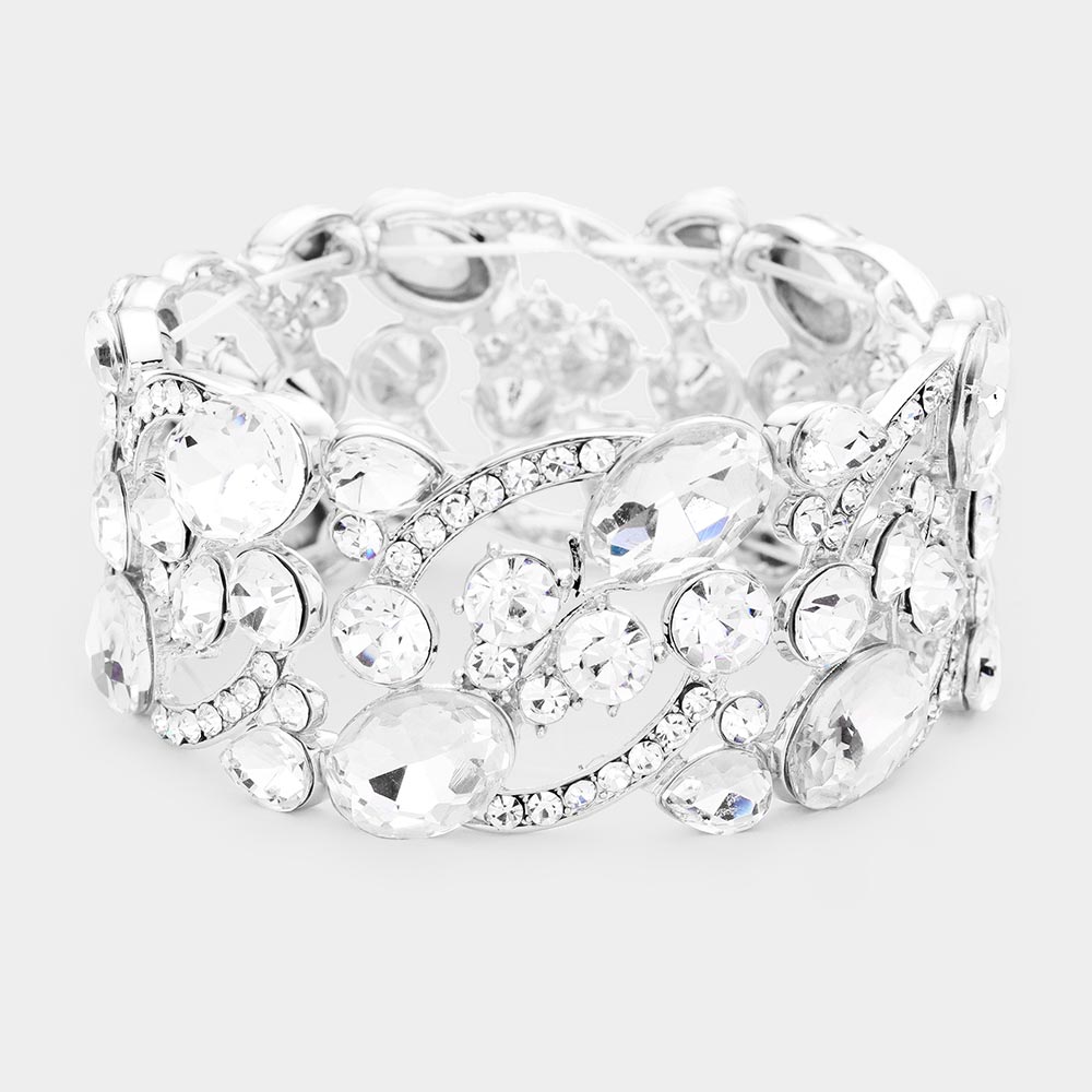 Glass Crystal Oval Butterfly Stretch Evening Bracelet
