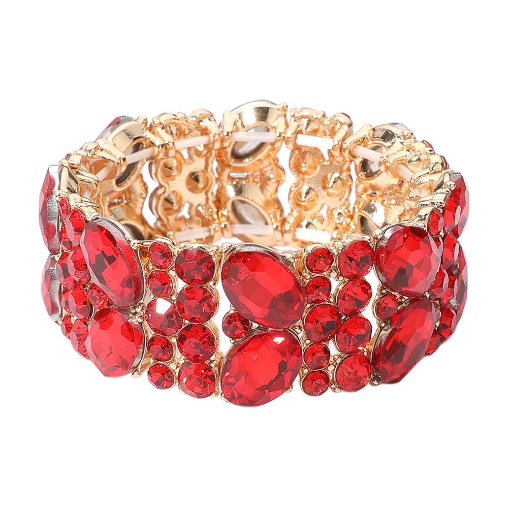 Glass Crystal Oval Round Stretch Evening Bracelet