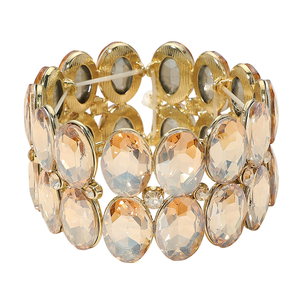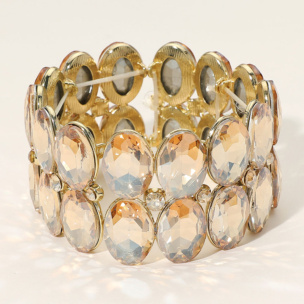 Glass Crystal Oval Stone Cluster Stretch Bracelet